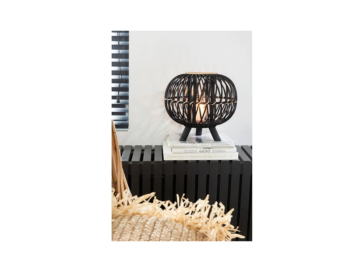 Lanterne Déco "Bambou sur Pied" 41cm Noir