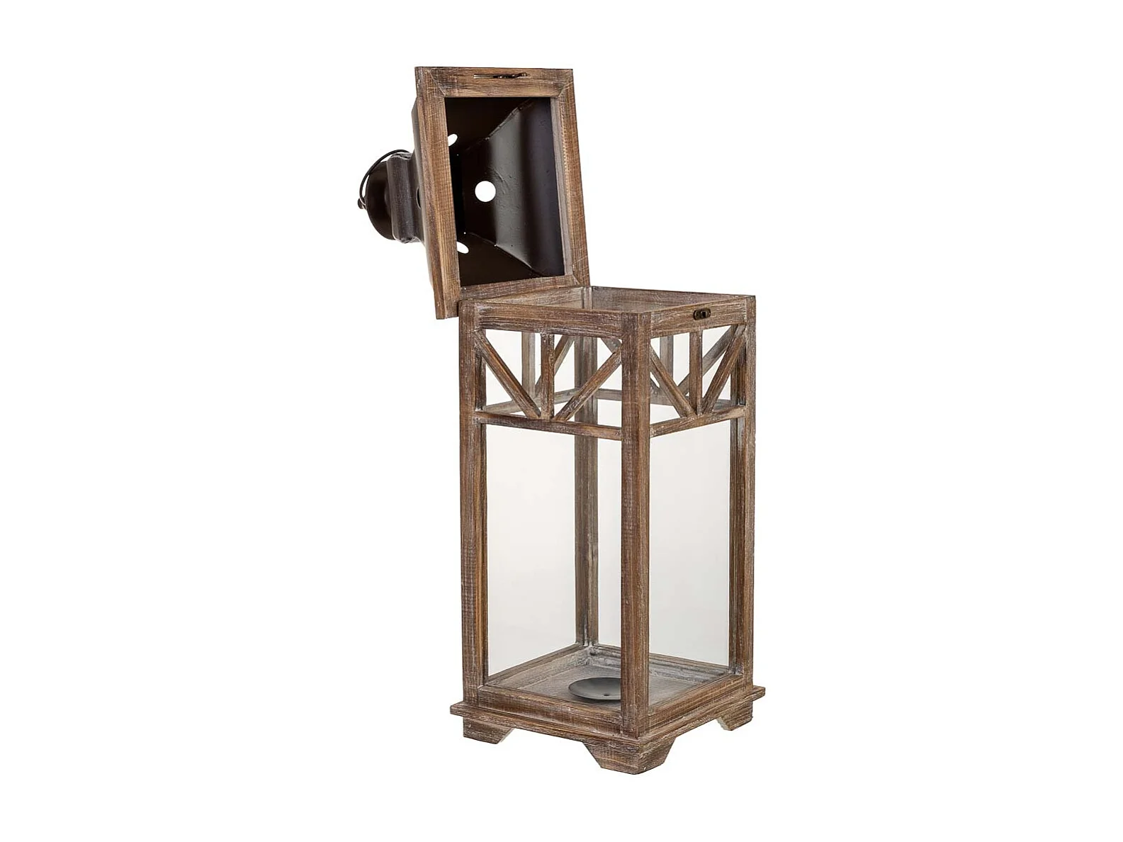Lanterne en bois brun 30 x 23 x 64 cm (h)