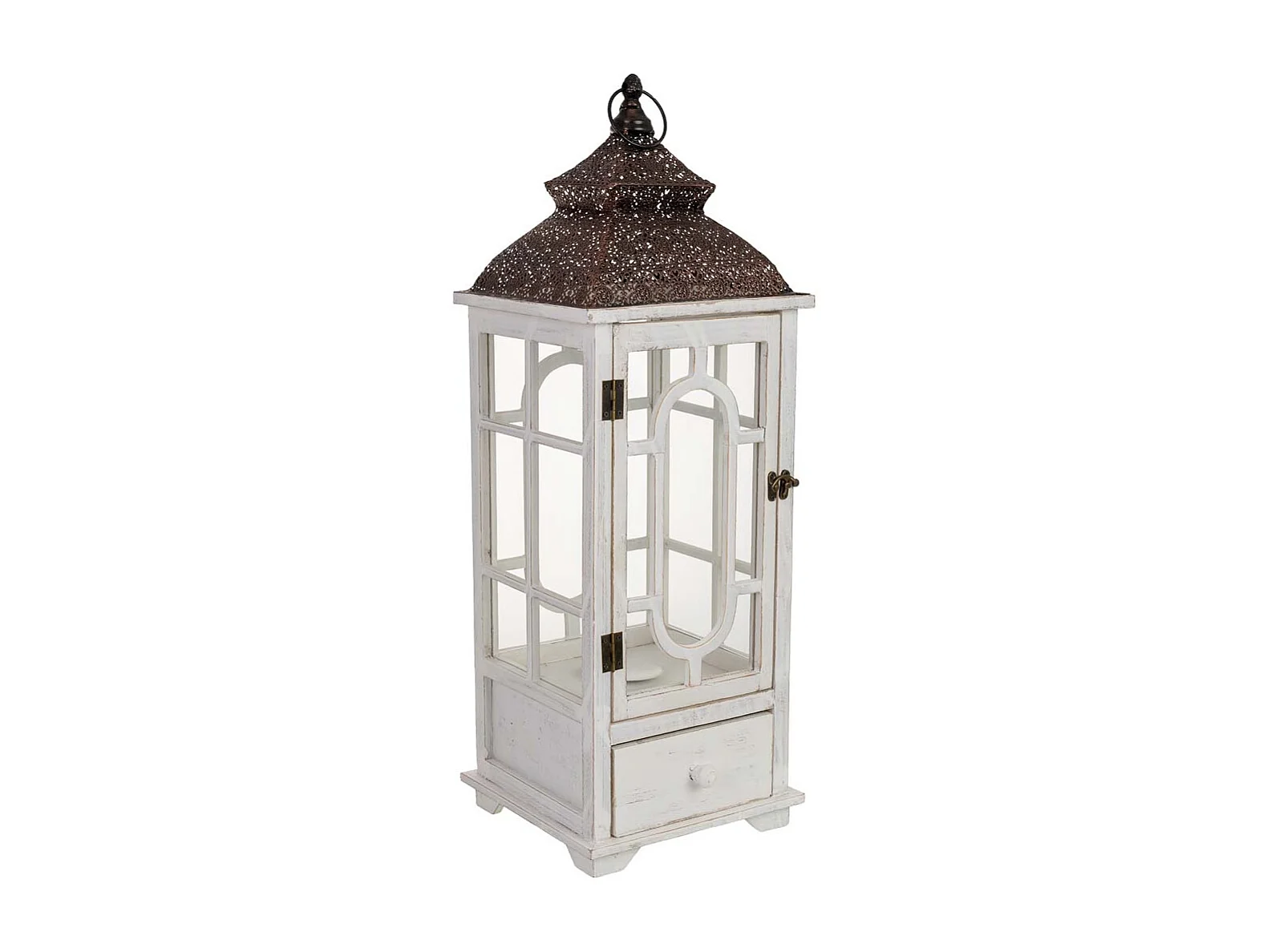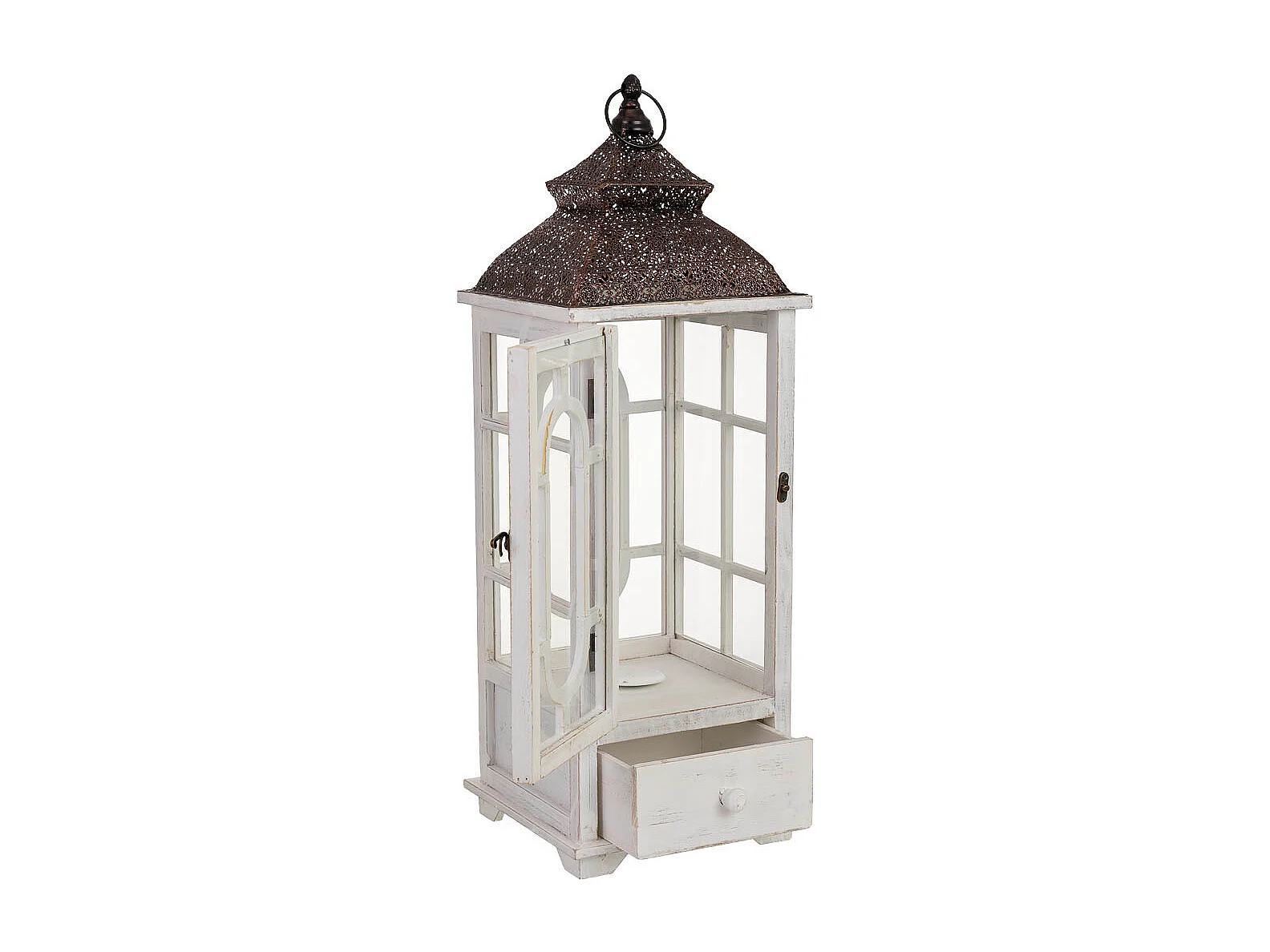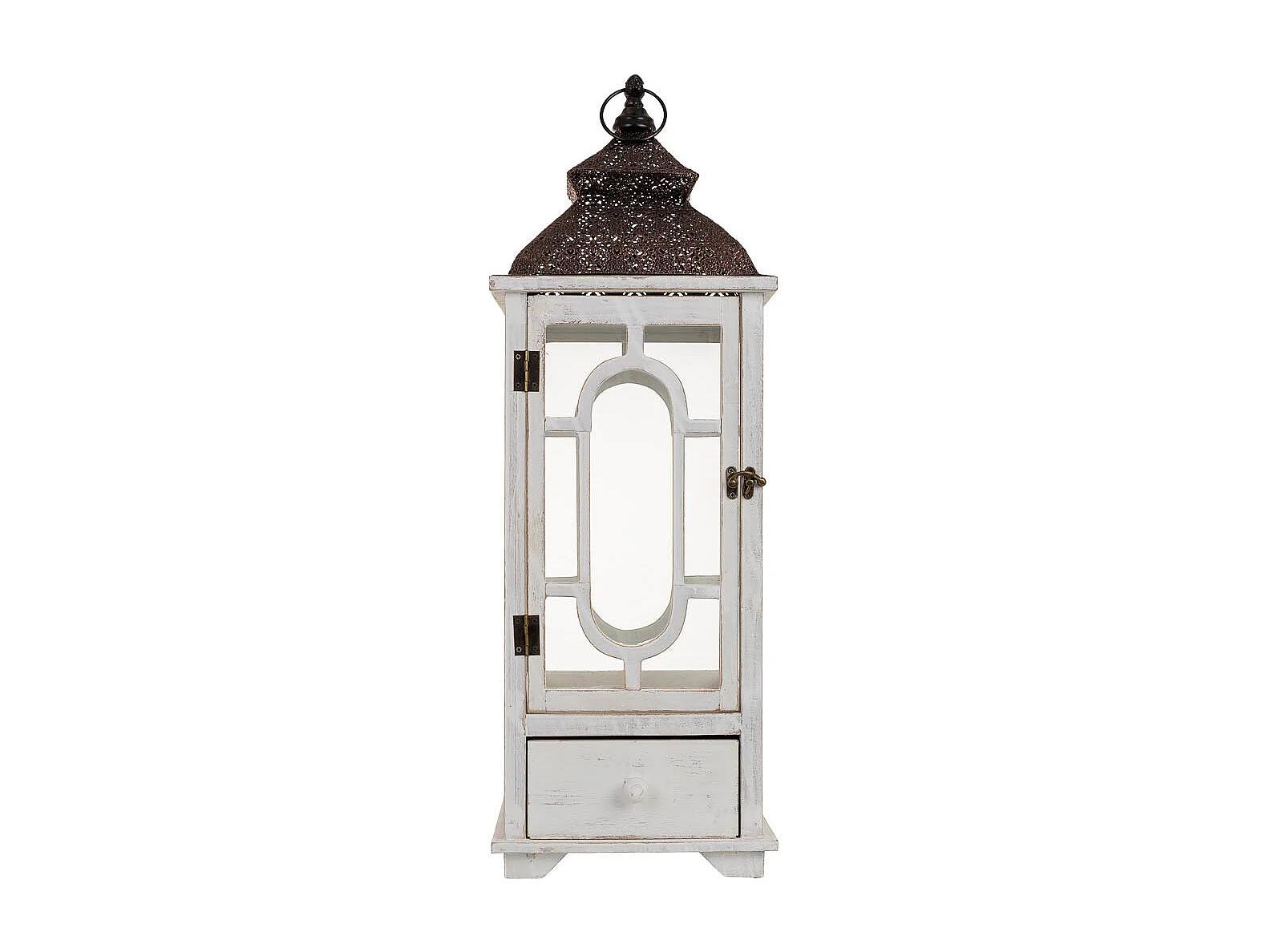 Lanternes jardin extérieur à poser bougie ancienne bois blanc 58-39cm