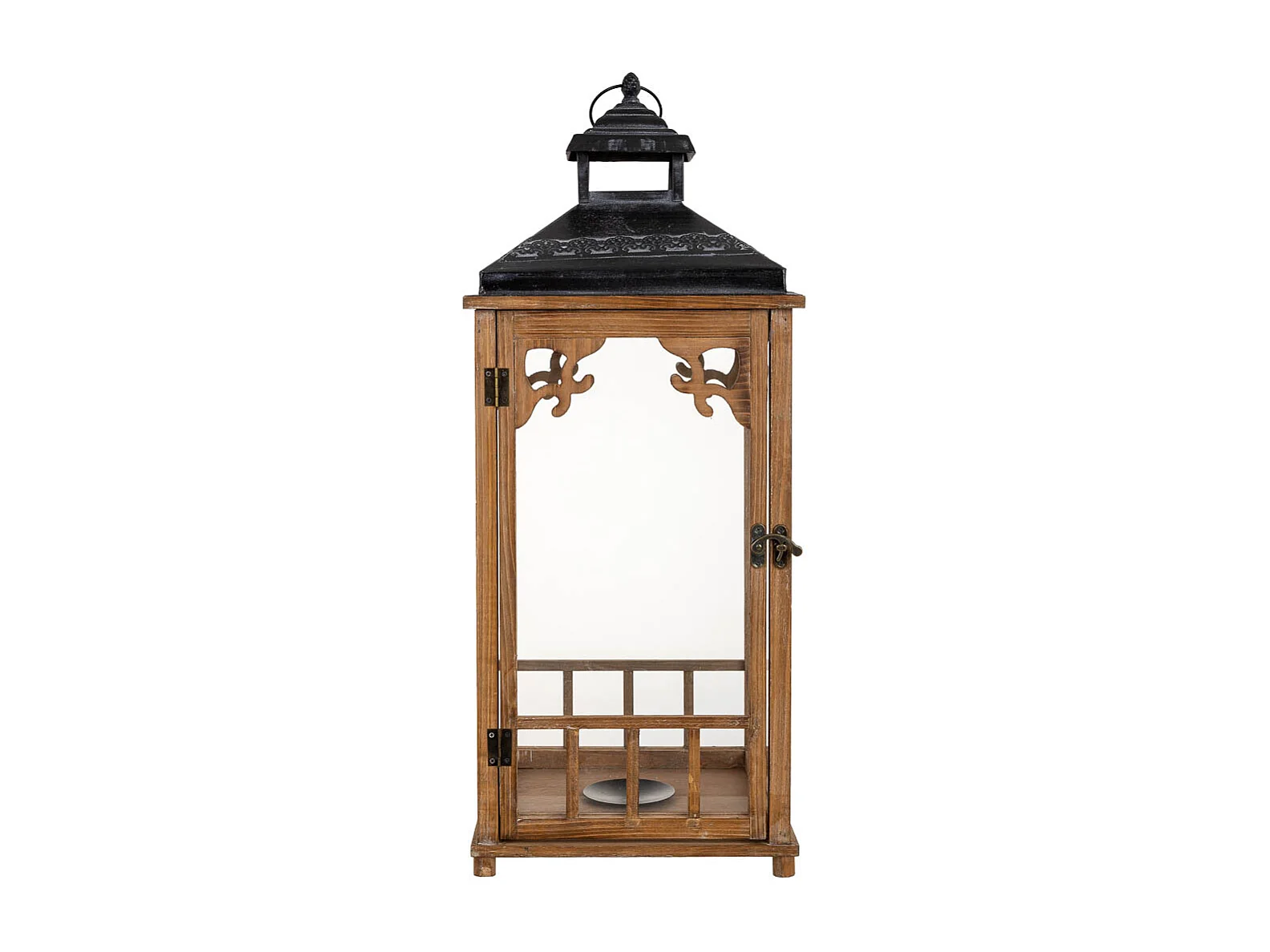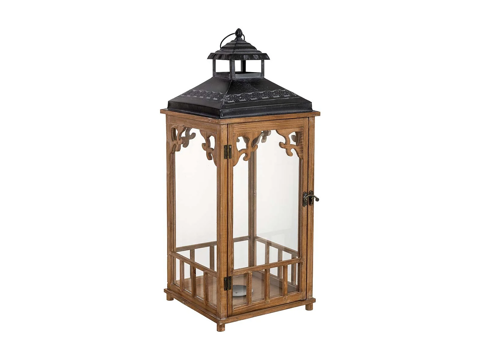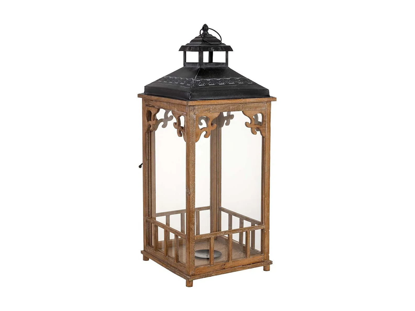 Lanterne en bois brun 30 x 23 x 64 cm (h)