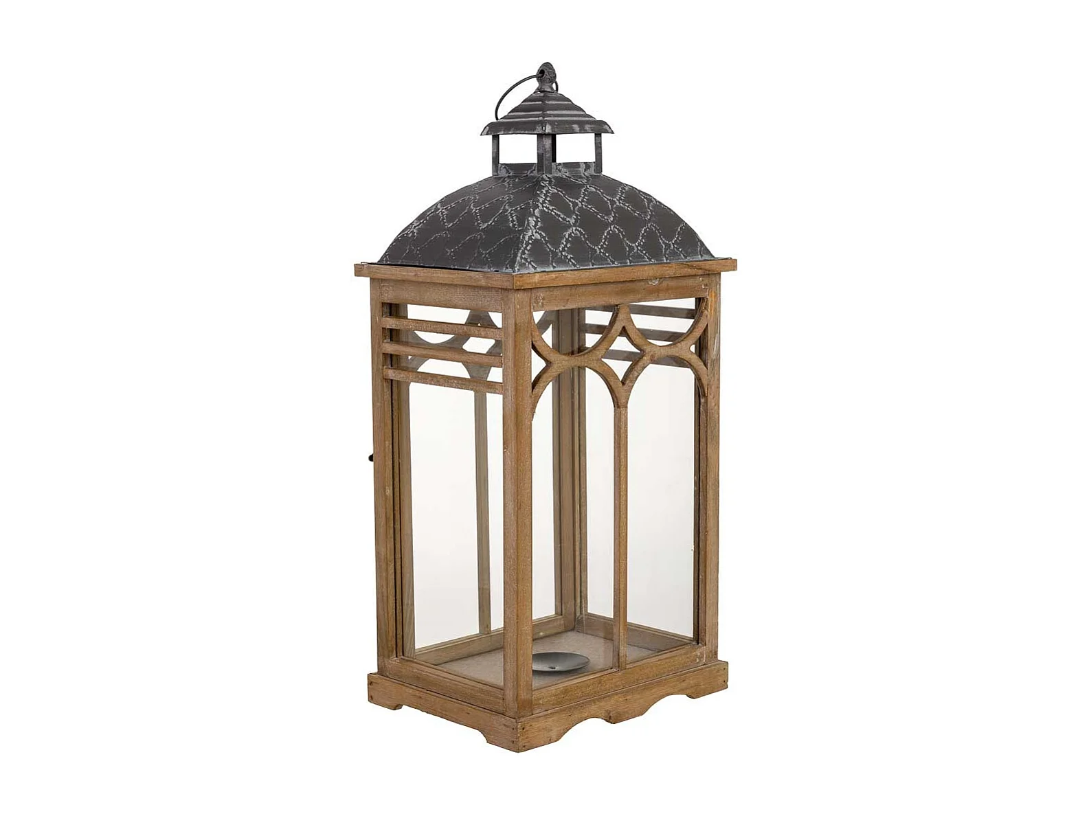 Lanterne en bois brun 30 x 23 x 64 cm (h)
