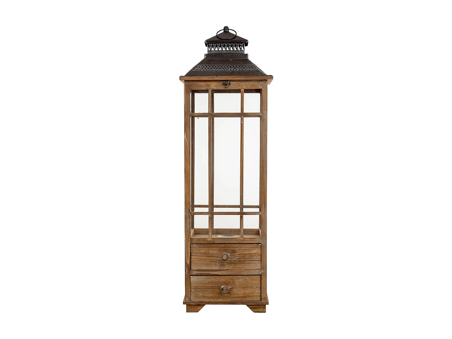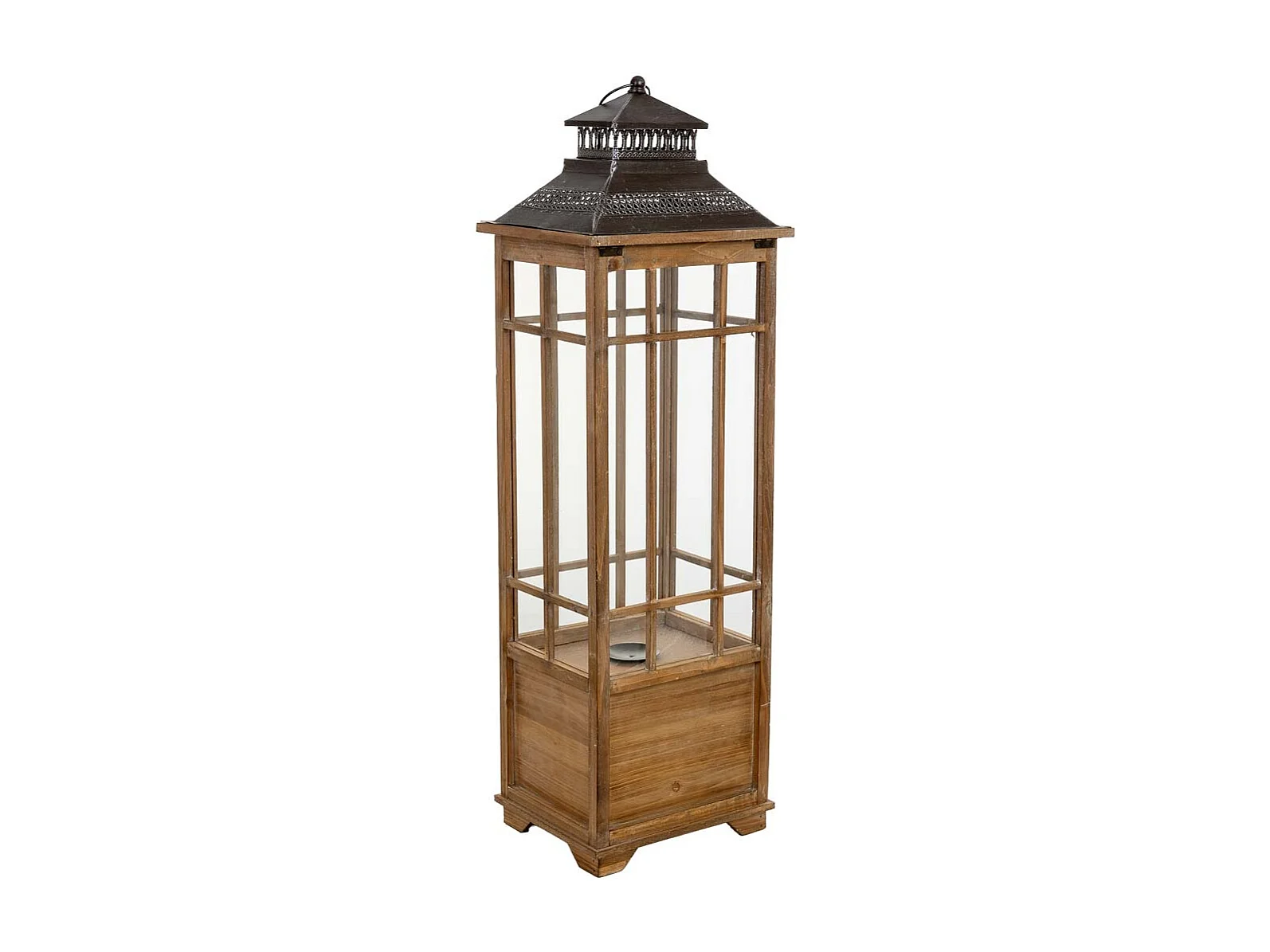 Lanterne en bois brun 40,5 x 34,5 x 72,5 cm (h)