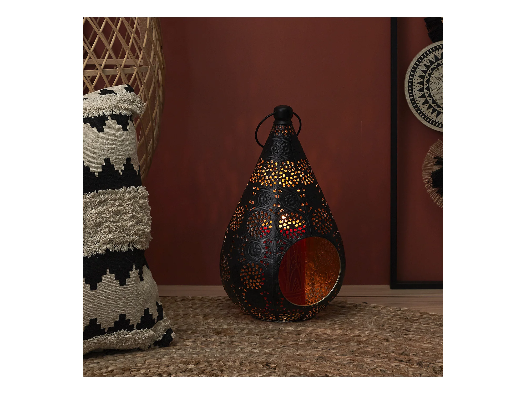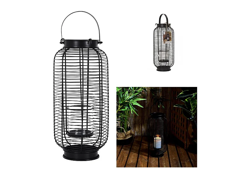 Lanterne En Metal Ajoure Mirage H33cm Noir