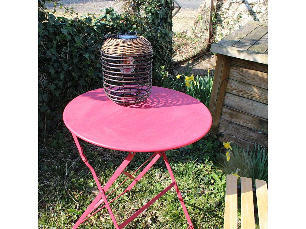 Lanterne en résine tressée recharge solaire 21 x 27 cm