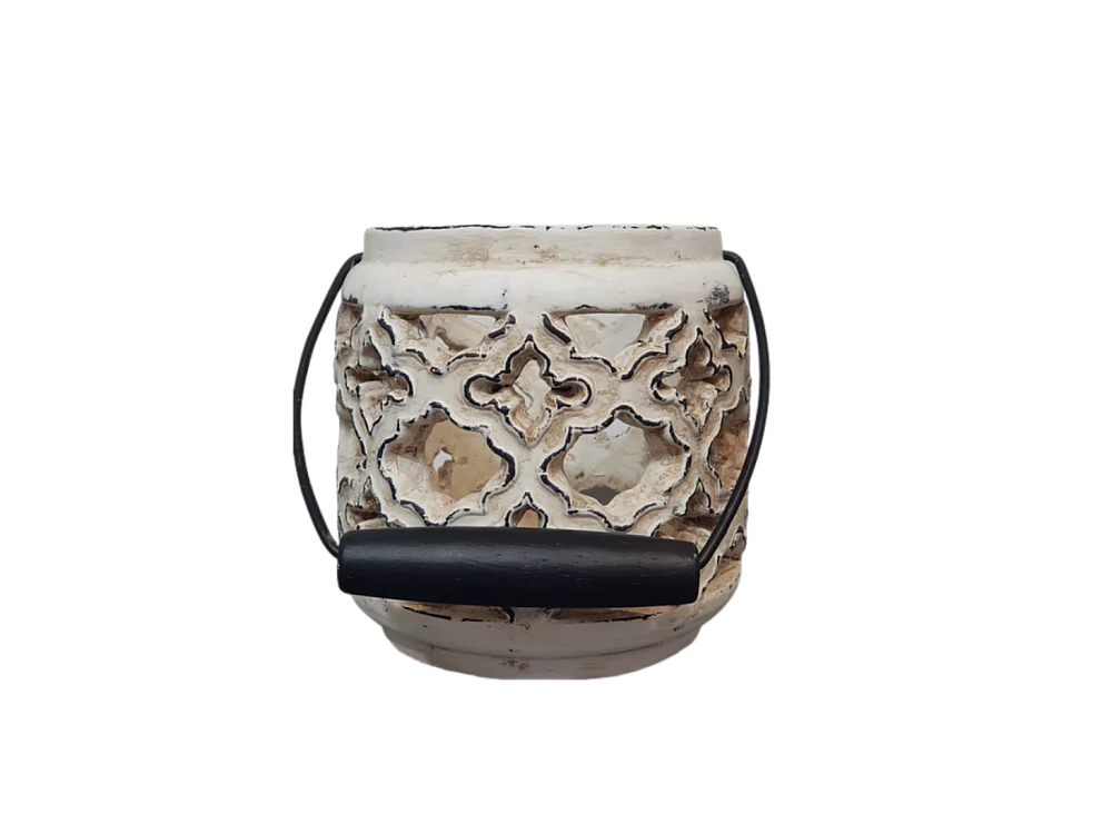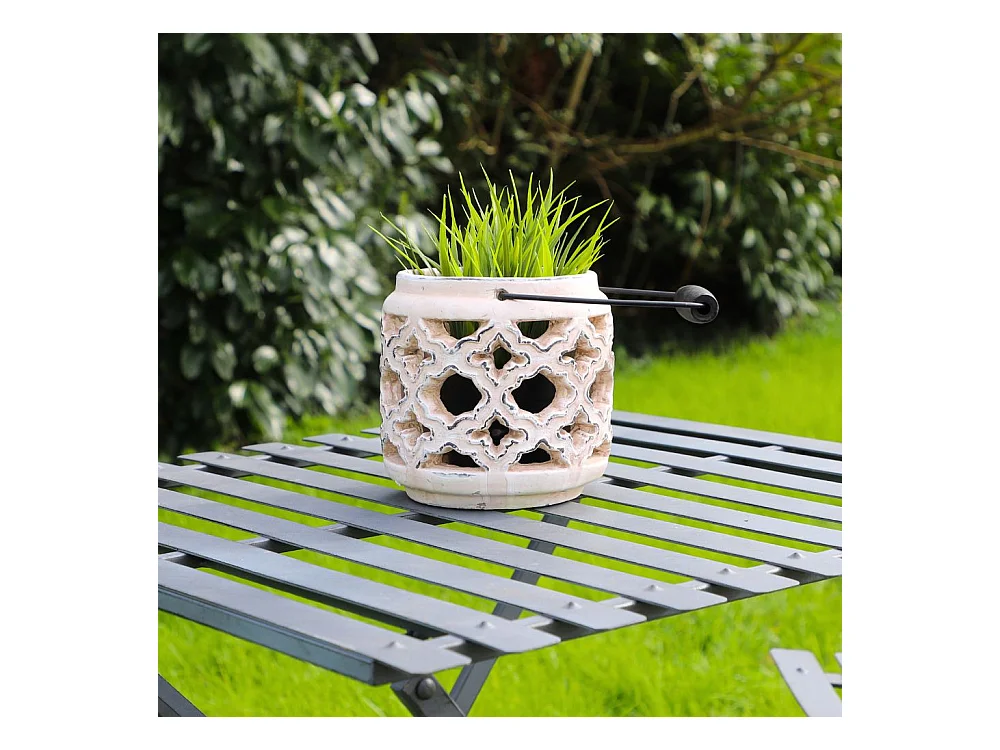 Lanterne extérieur jardin à poser bougie ancienne béton crème 14cm