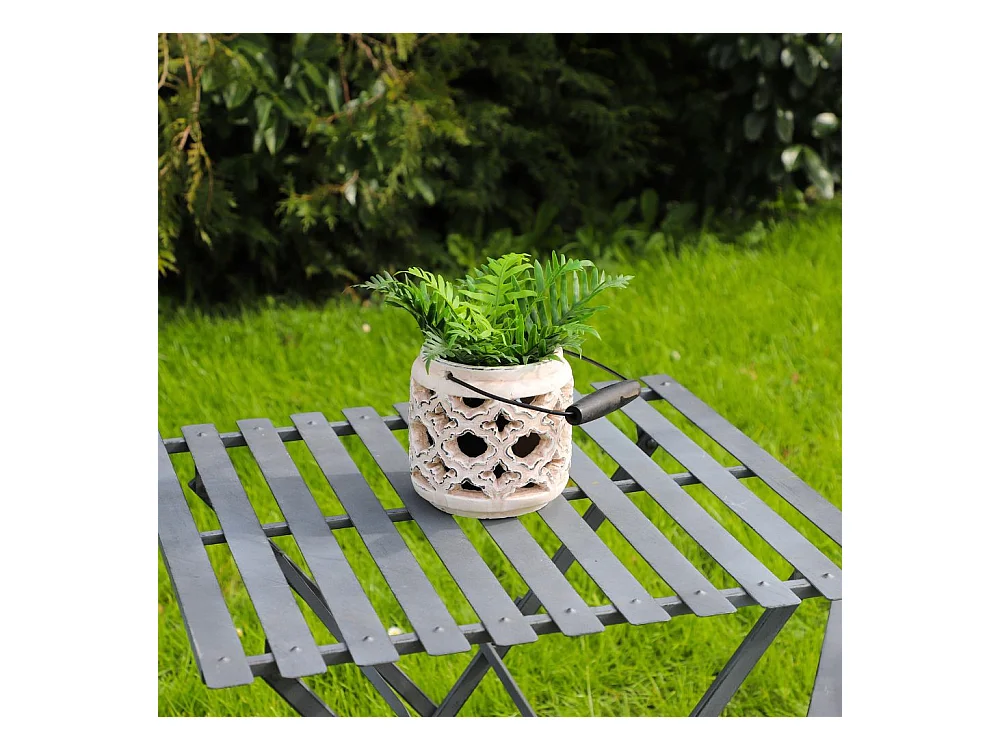 Lanterne jardin extérieur à poser bougie ancienne rotin 24cm
