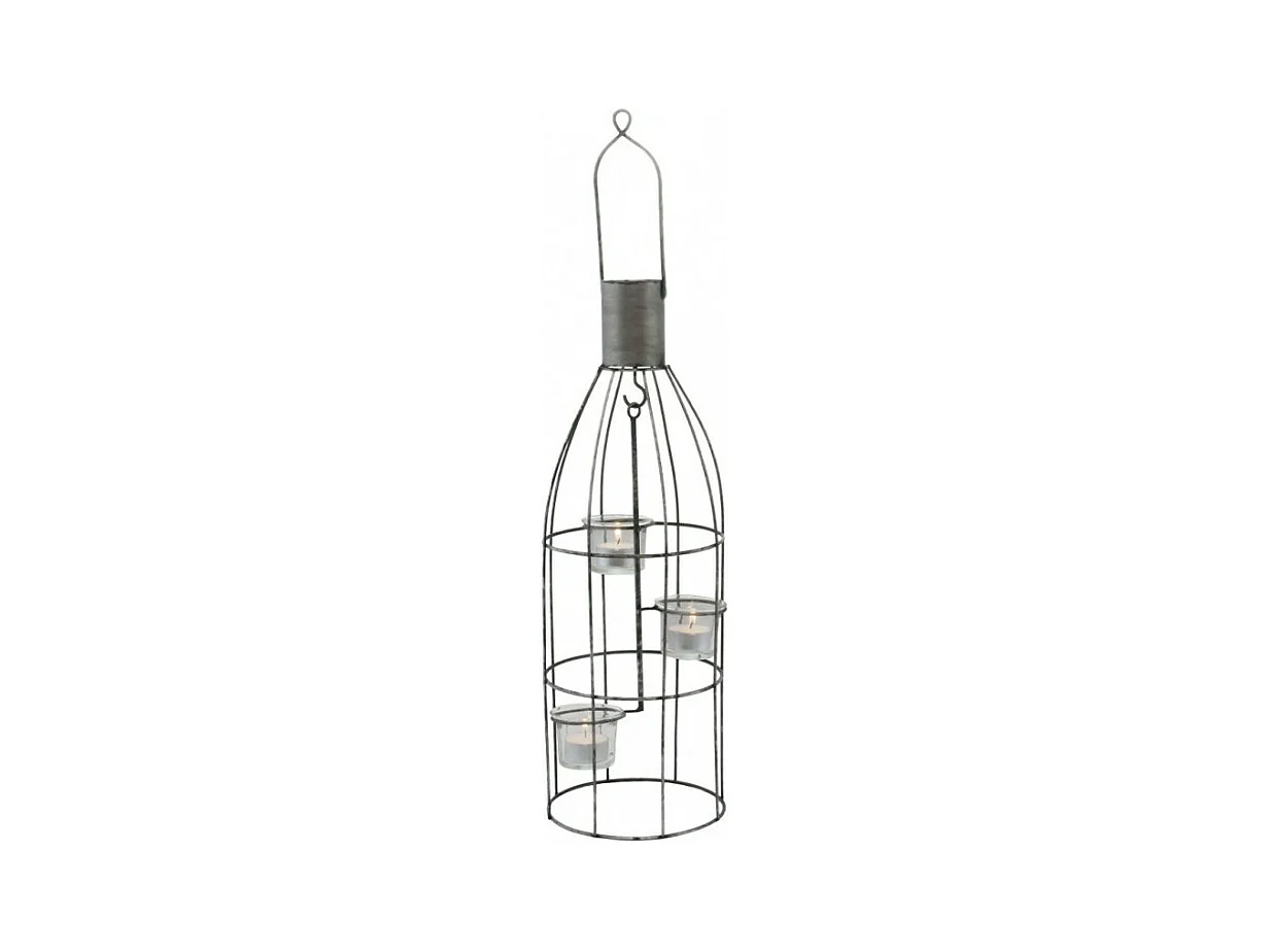 Photophore bougie lanterne extérieur mural métal verre gris 50cm
