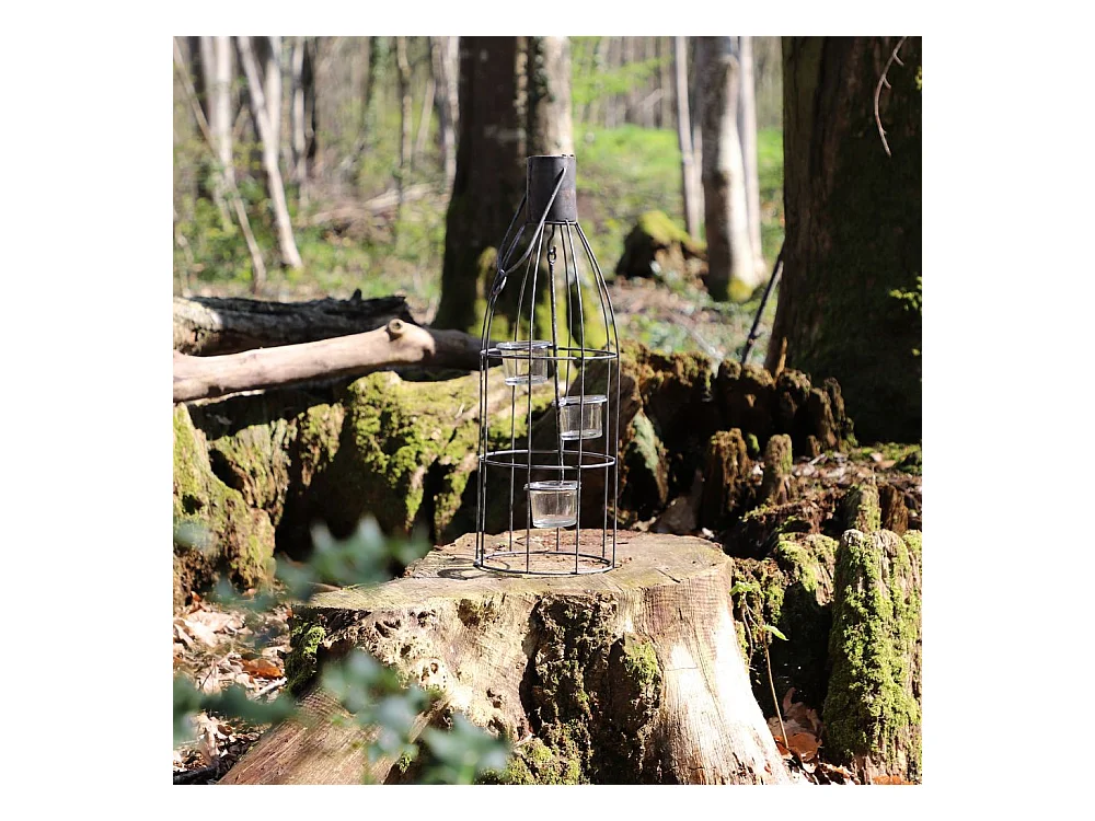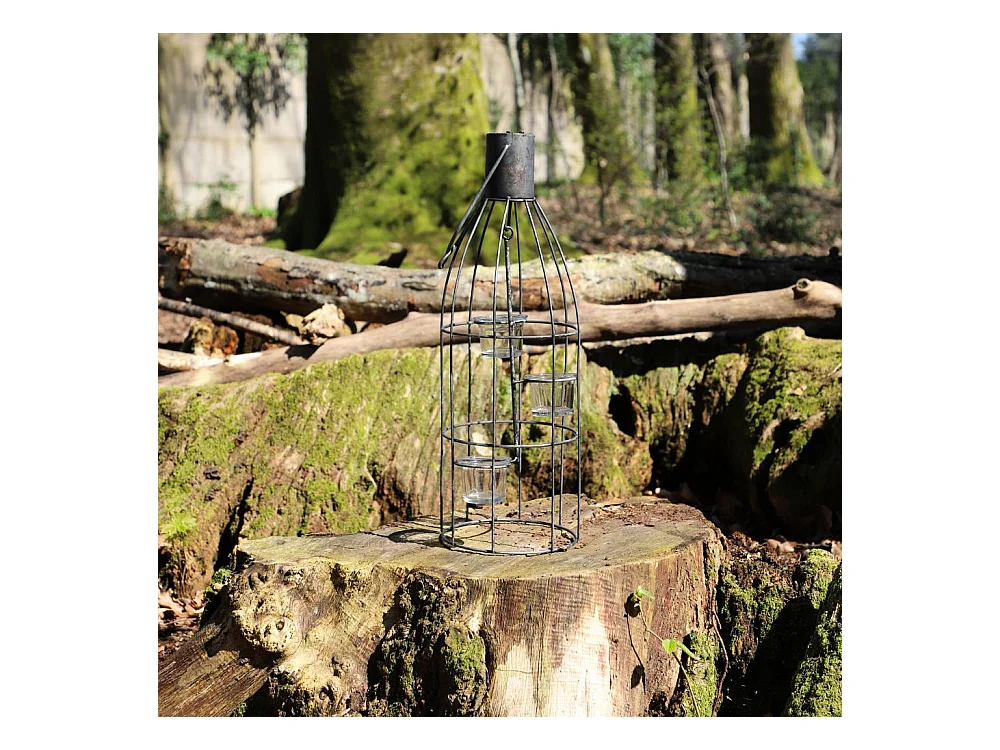 Lanterne extérieure jardin à poser bougie ancienne métal gris 60 cm