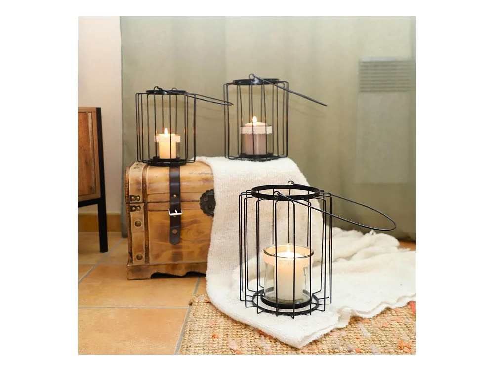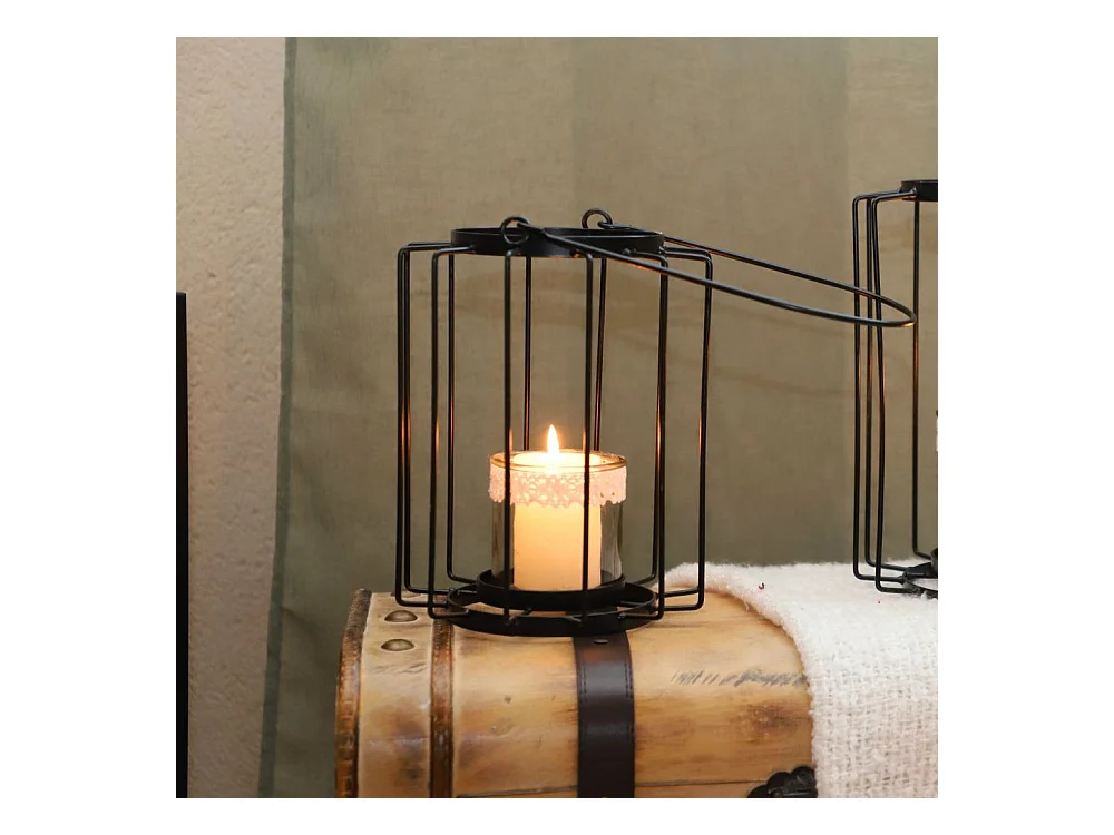 Lanterne jardin extérieur à poser bougie ancienne métal noir 20cm