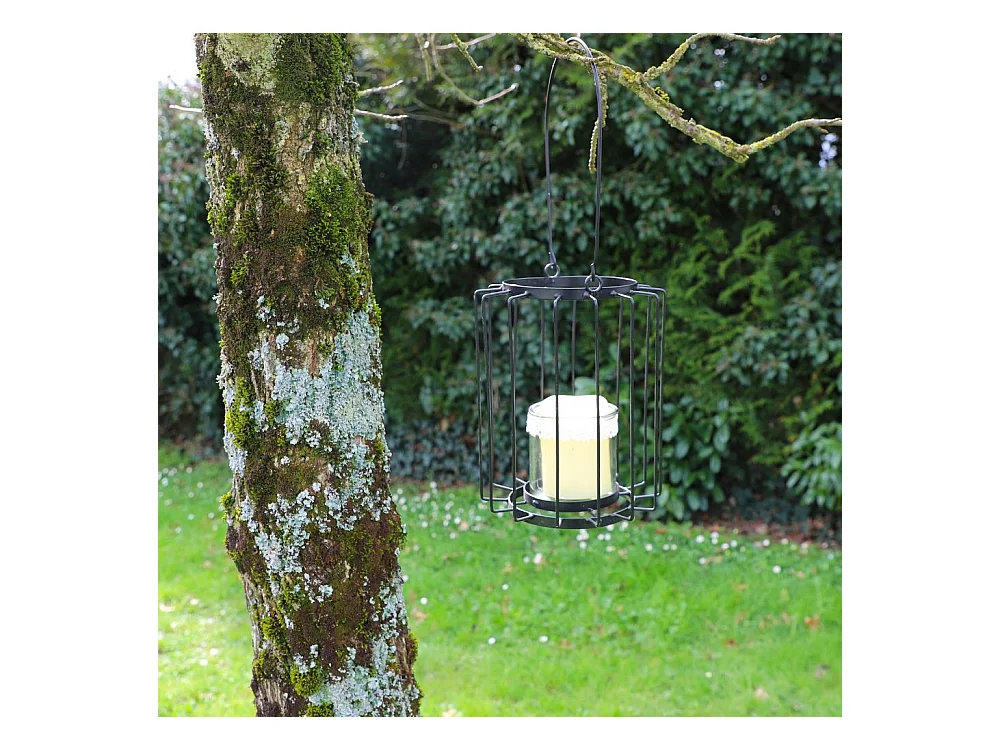 Lanterne jardin extérieur à poser bougie ancienne métal noir 20x25cm