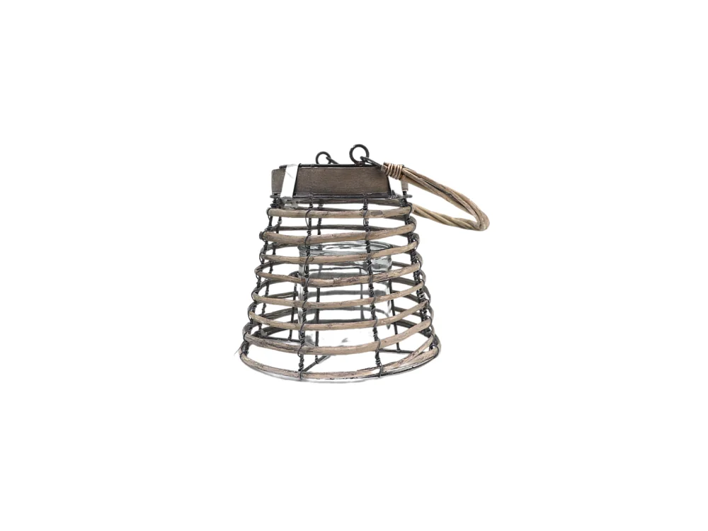 Lanterne jardin extérieur à poser bougie ancienne rotin naturel 24cm