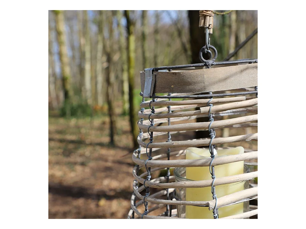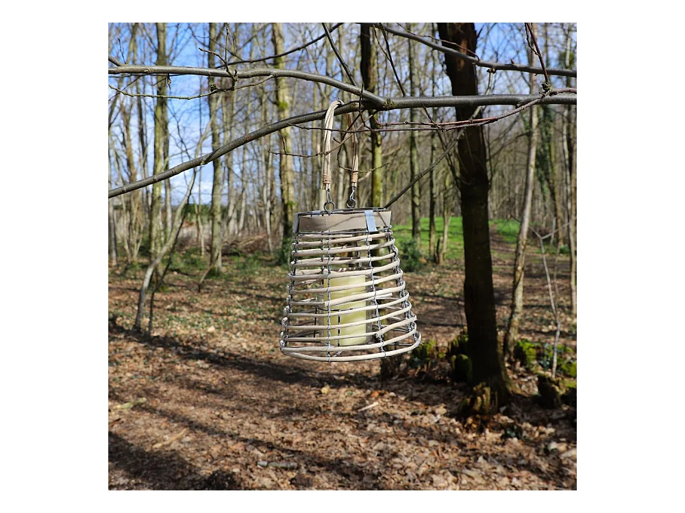Lanterne jardin extérieur à suspendre bougie ancienne rotin 28cm