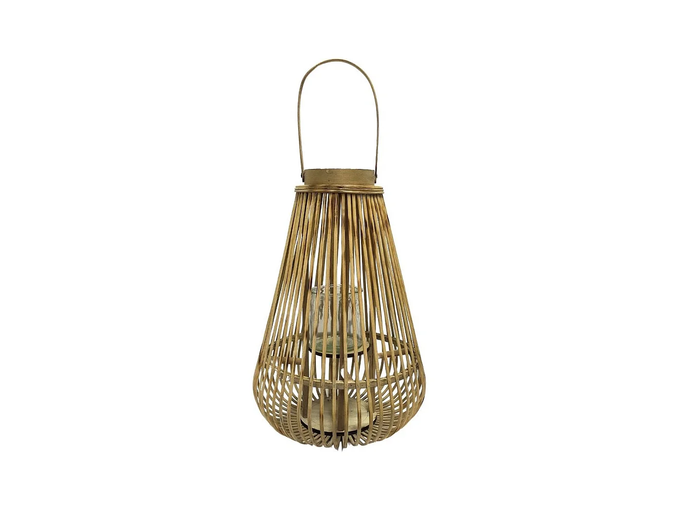 Lanterne jardin extérieur à poser bougie ancienne rotin naturel 24cm
