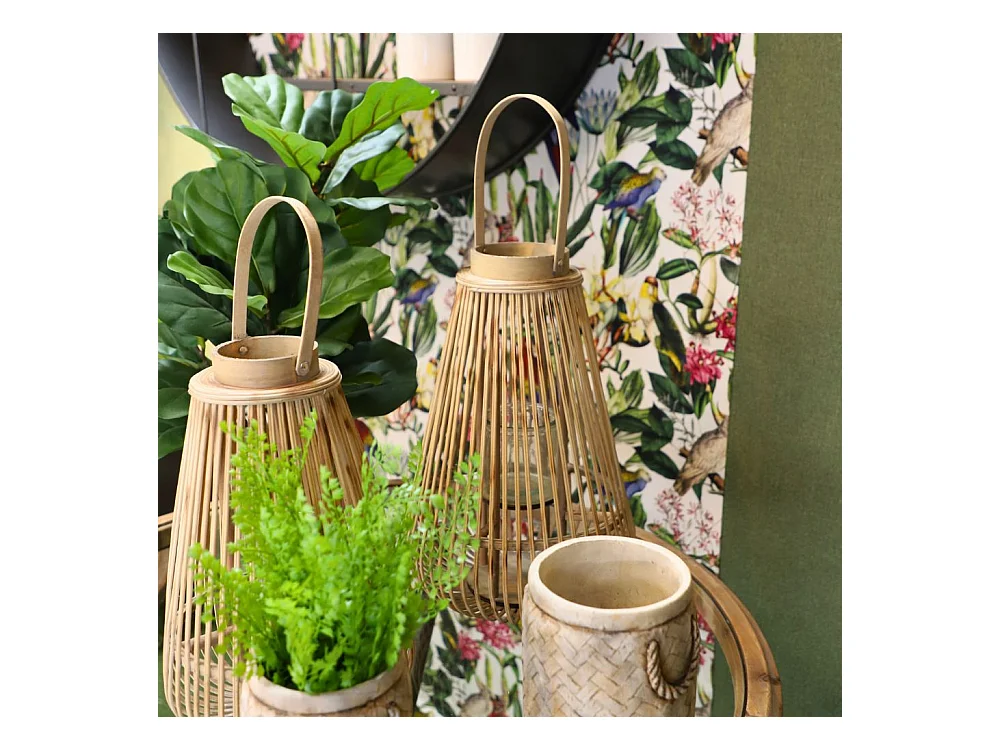 Lanterne jardin extérieur à poser bougie ancienne rotin naturel 44cm