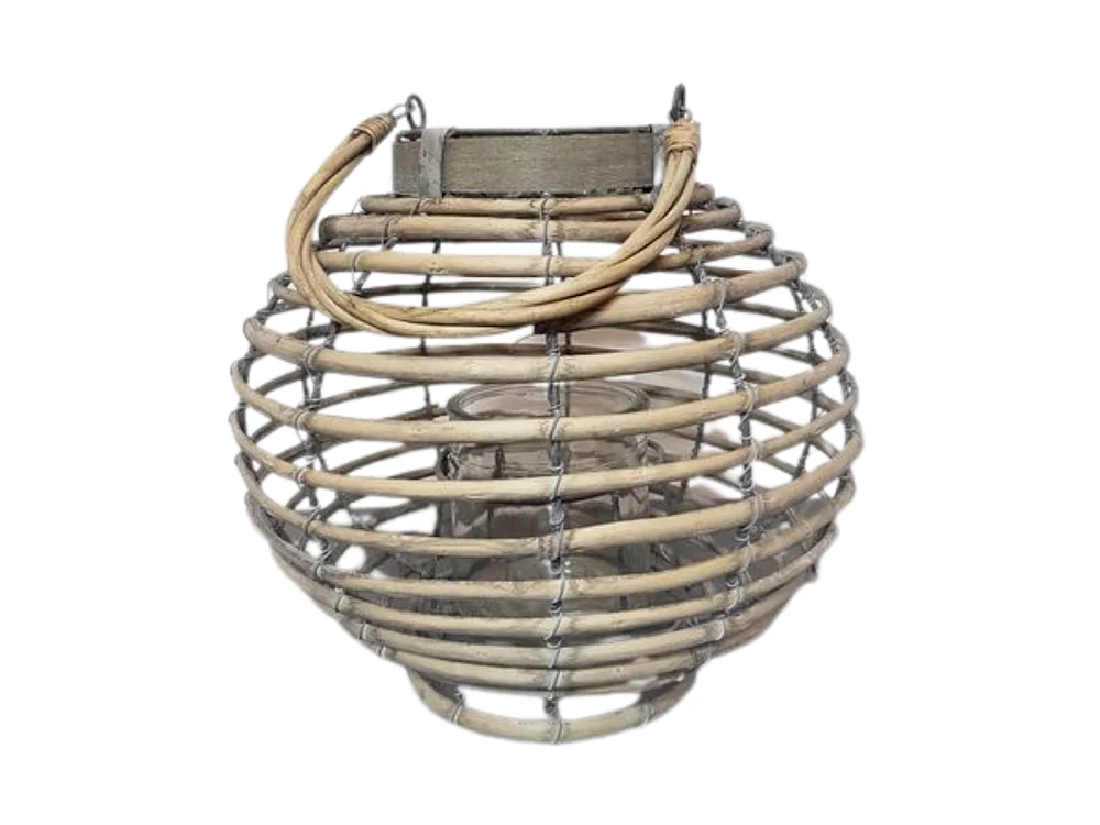 Lanterne jardin extérieur à poser bougie ancienne rotin naturel 24cm