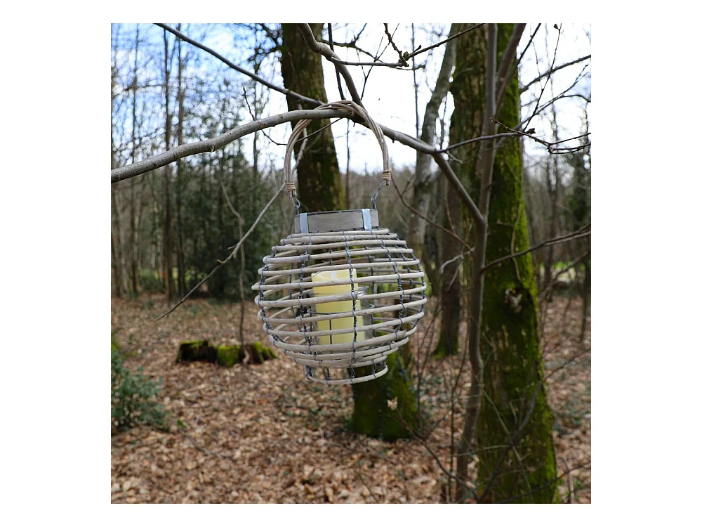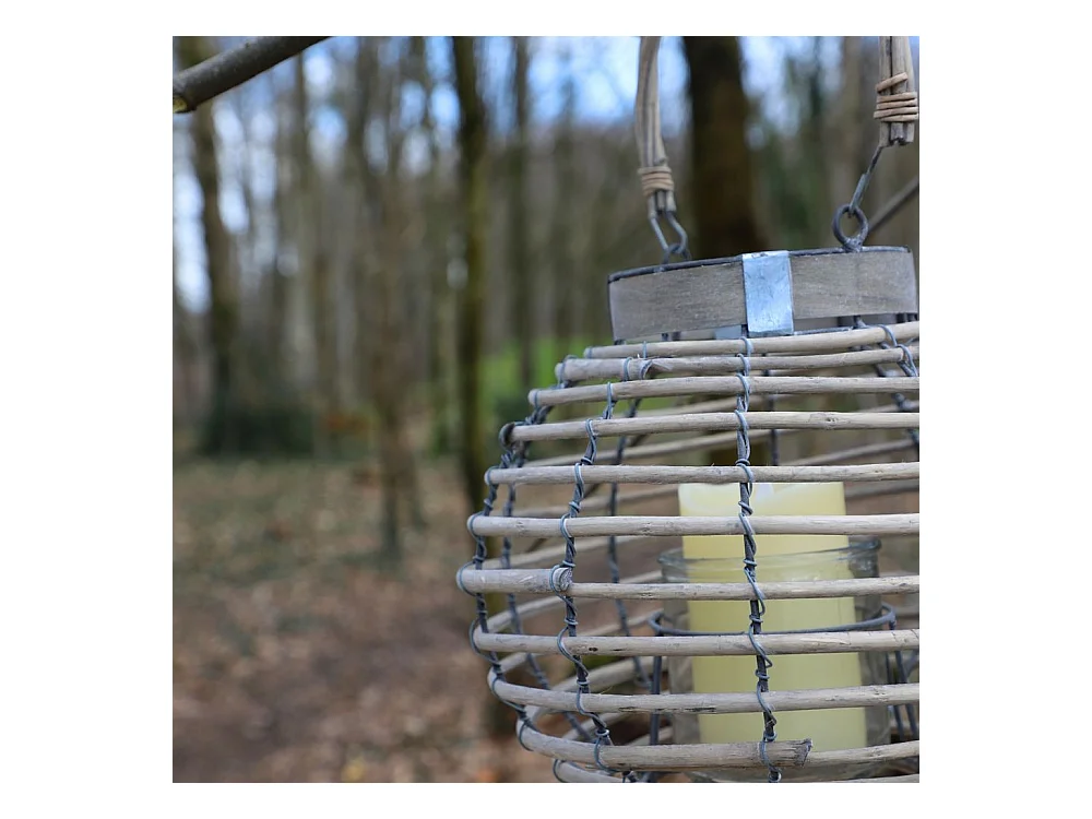 Lanterne jardin extérieur à suspendre bougie ancienne rotin 28cm