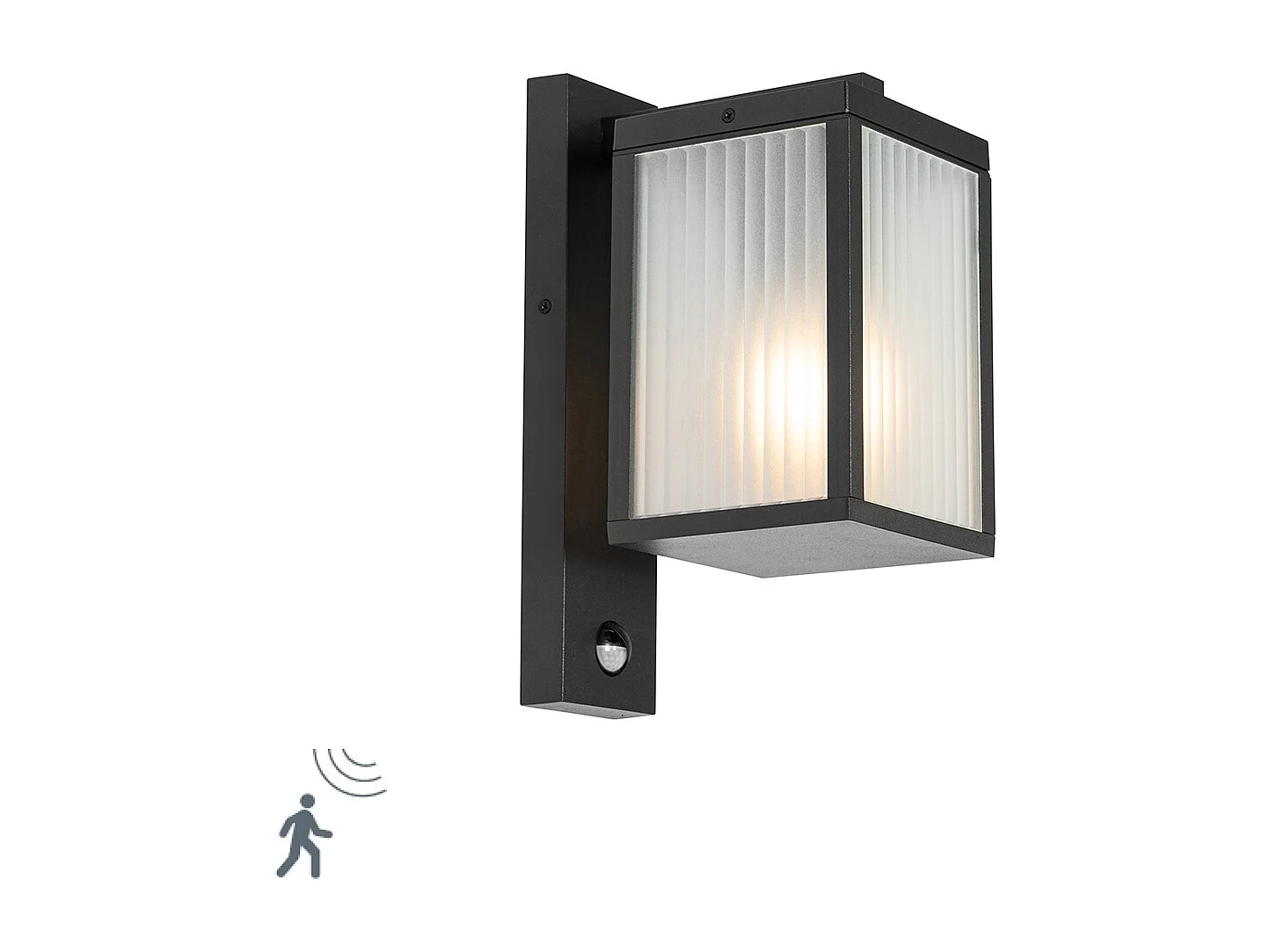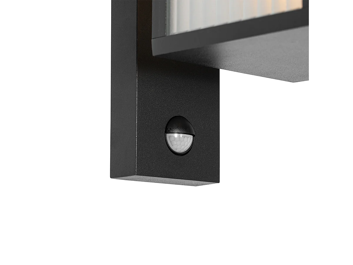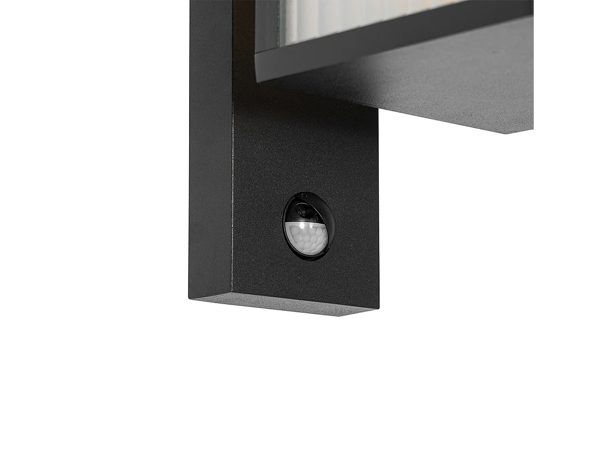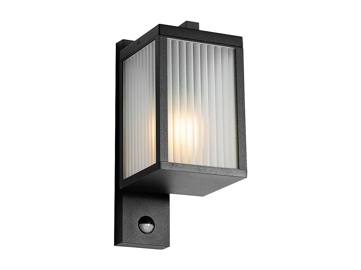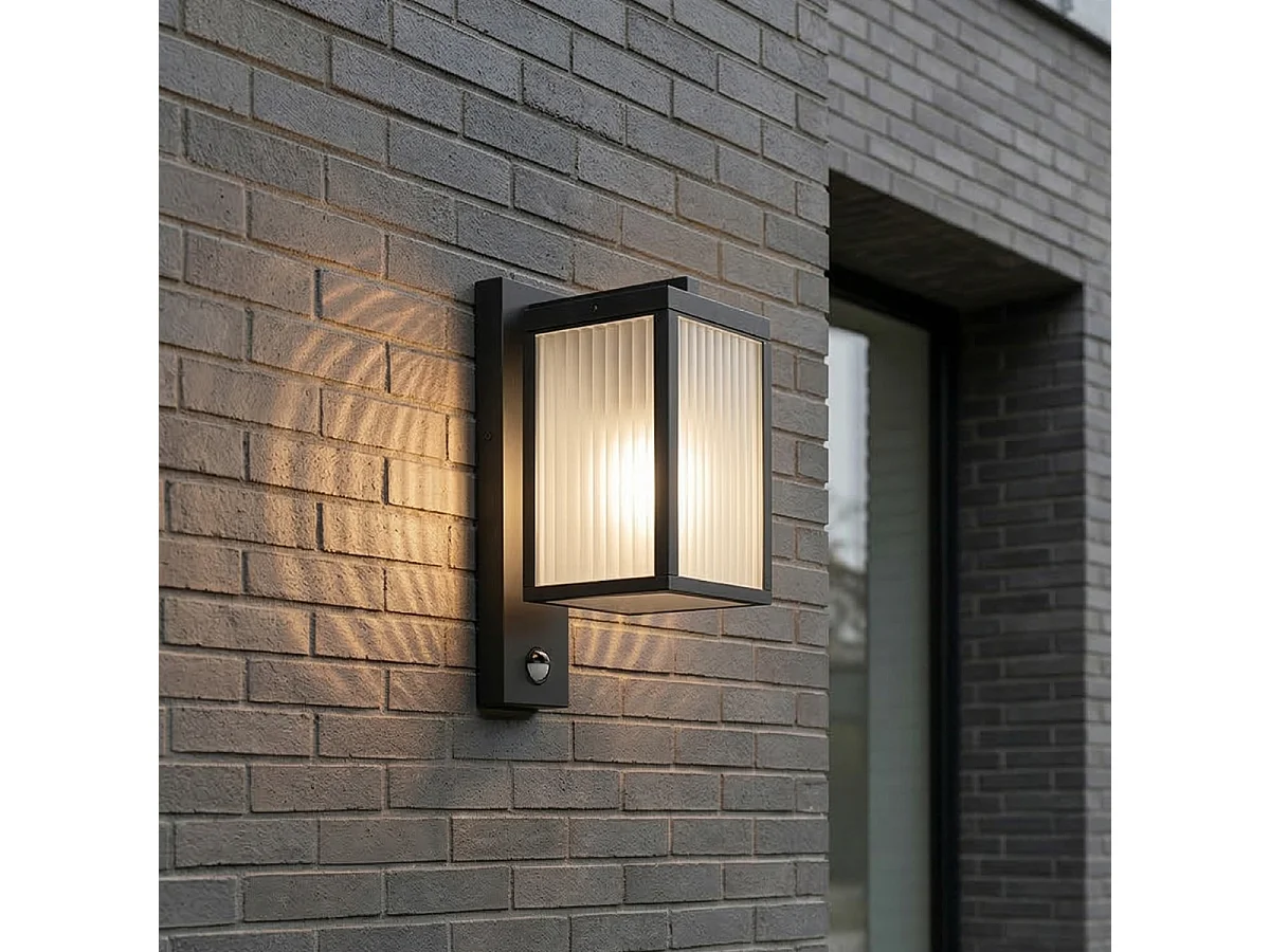 Lanterne murale d'extérieur noire avec verre nervuré et détecteur de mouvement - Charlois
