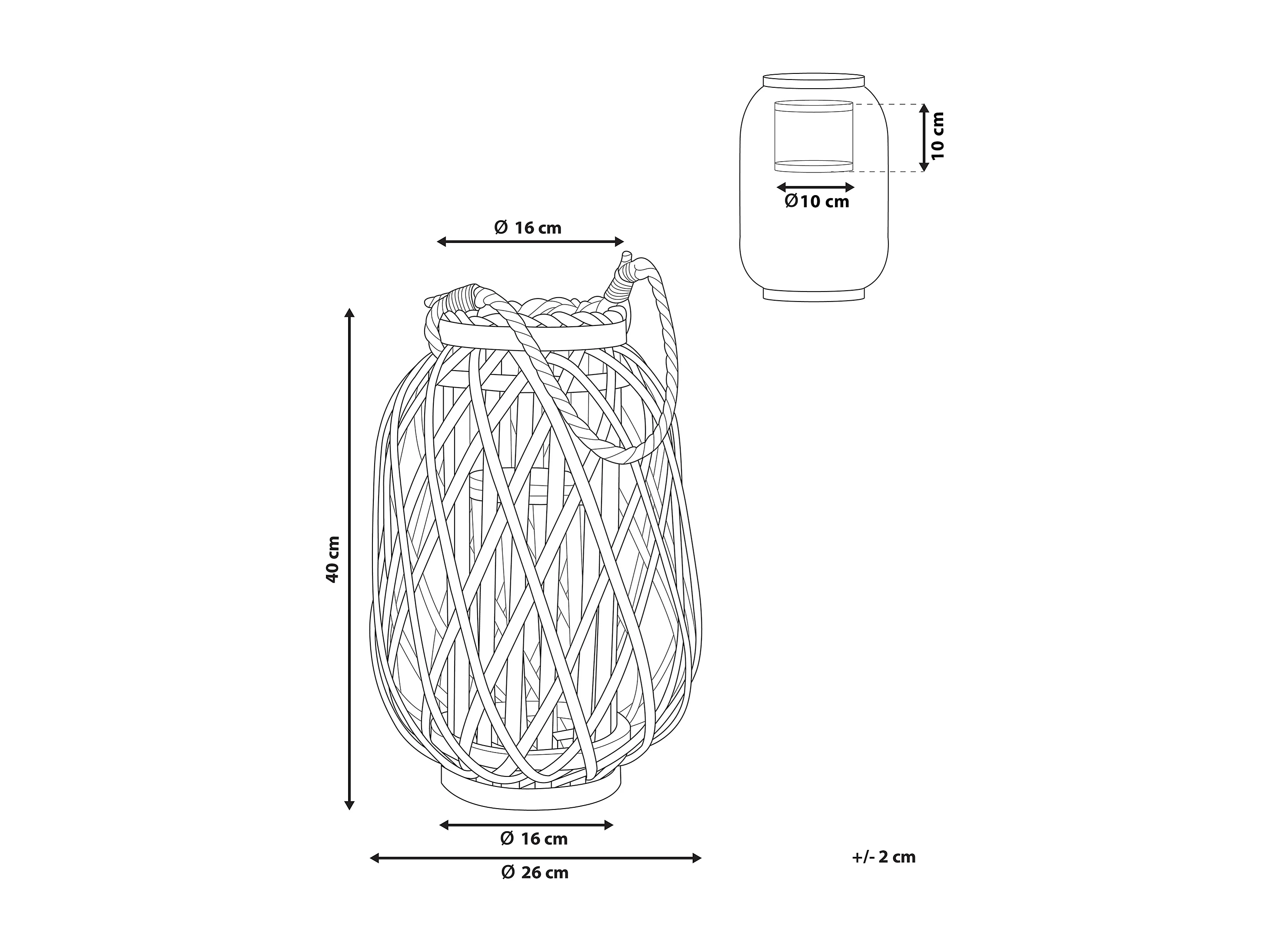 Lanterne MAURITIUS Bois de saule 40 cm Noir