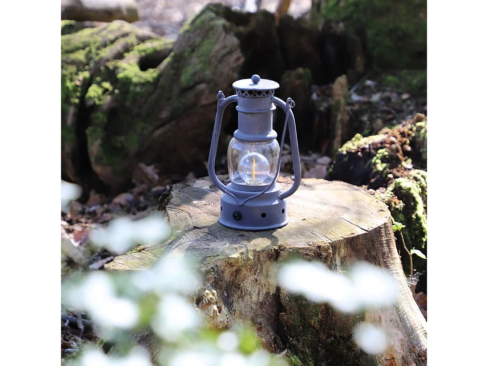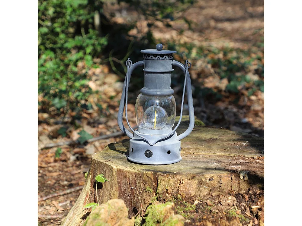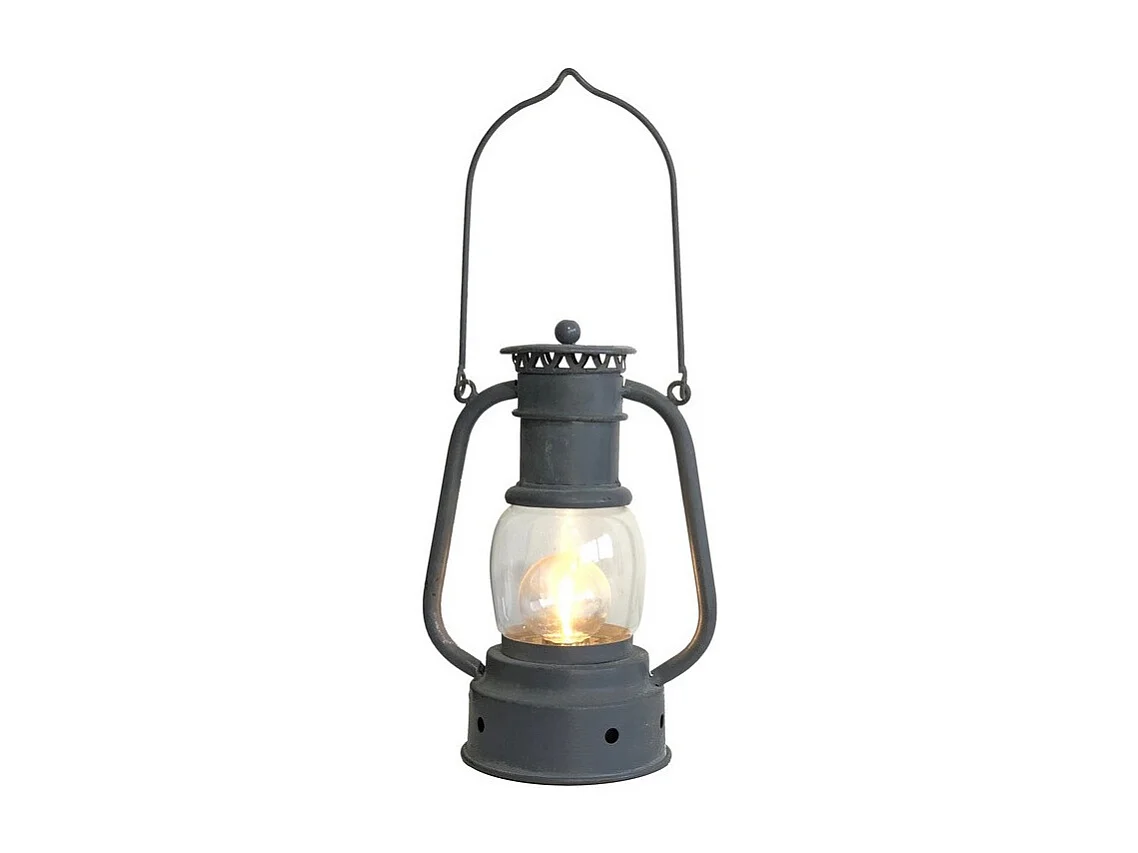 Lanterne pétrole jardin à poser à piles ancienne métal gris 22cm