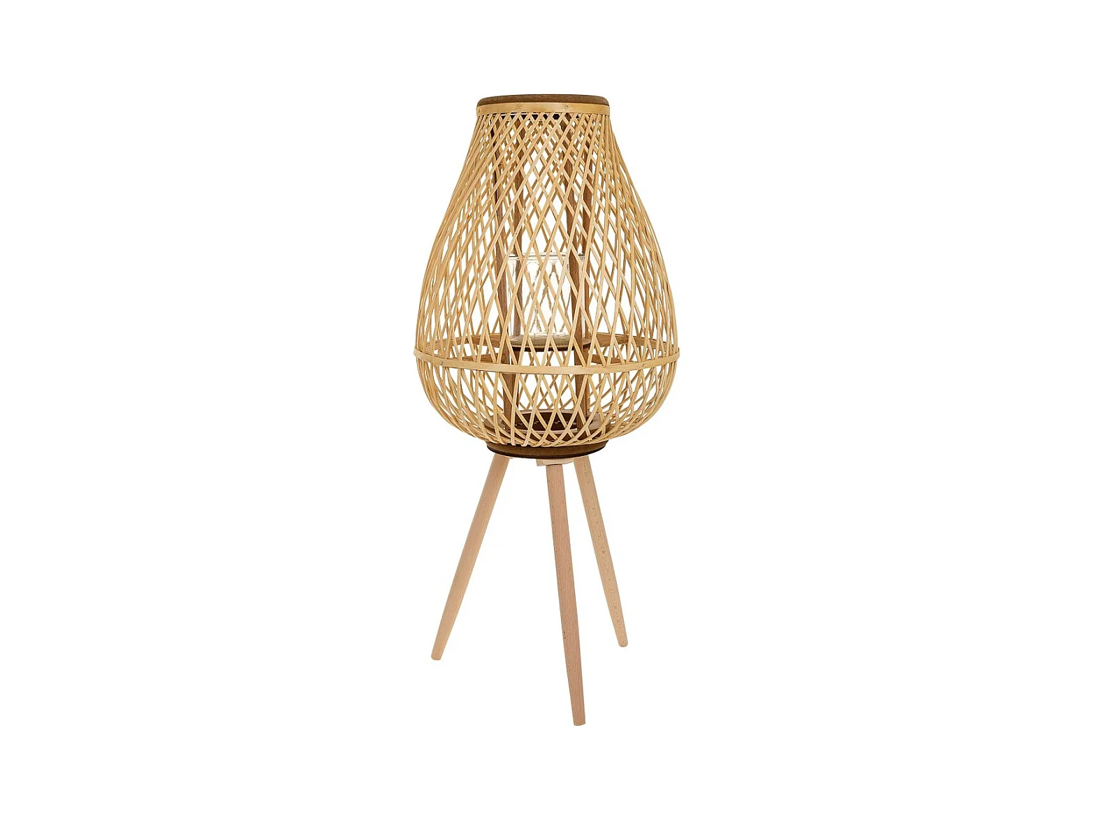Lanterne photophore avec bougie LED en bambou et rotin marron d29x48h