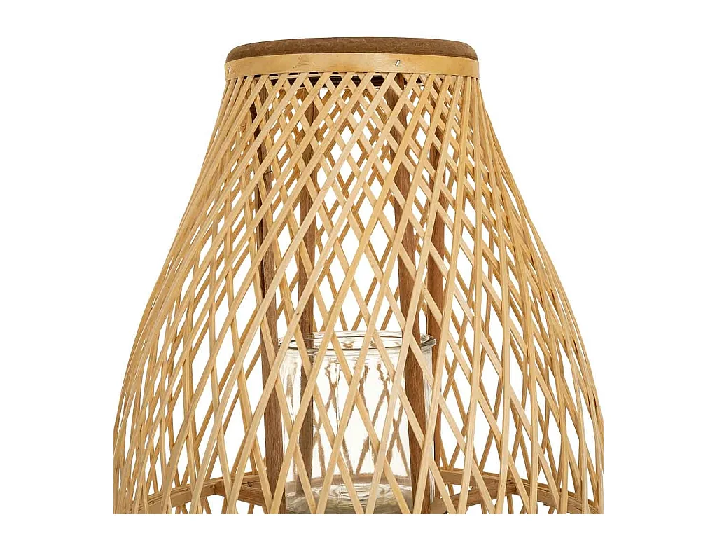 Lanterne photophore en bambou et rotin marron d36x31/64h