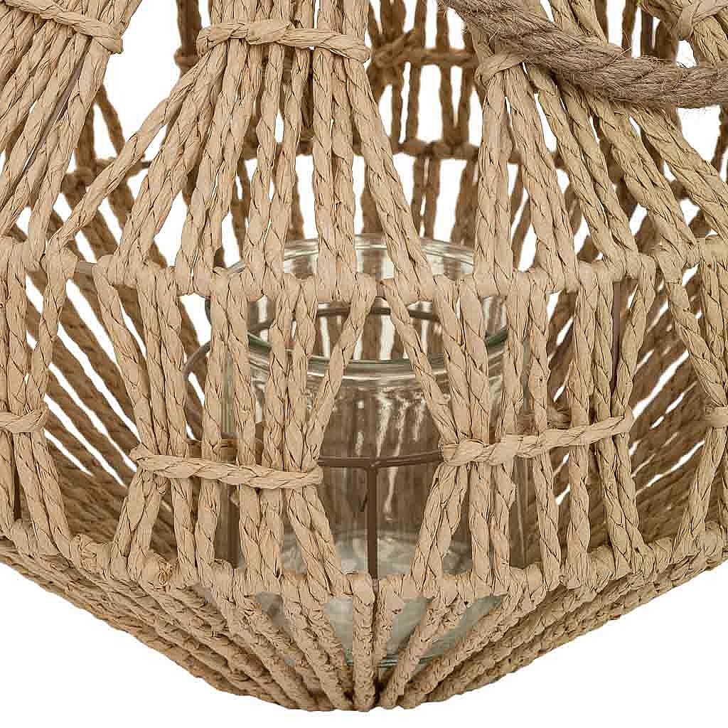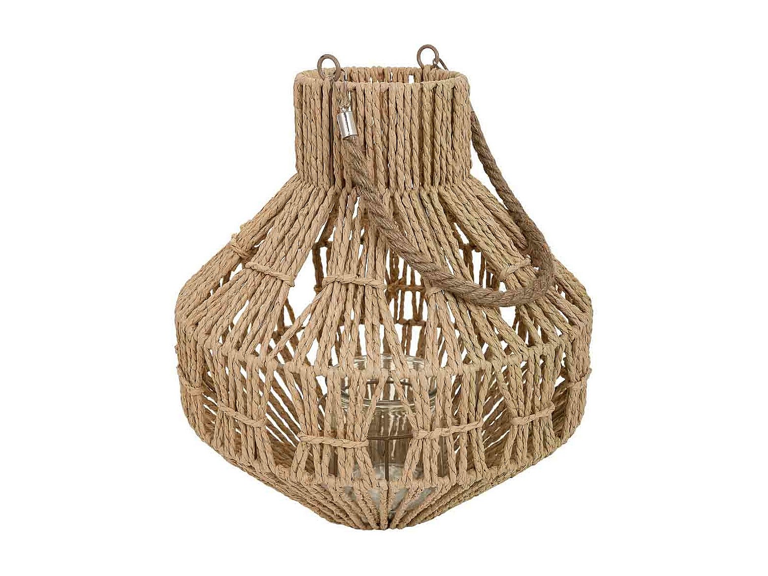 Lanterne photophore en métal et corde de papier marron d32x34,5h