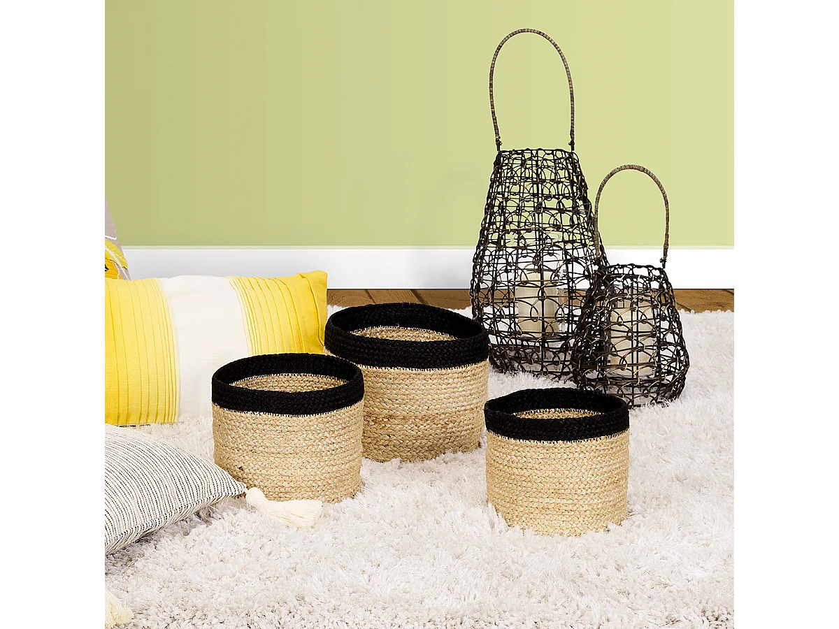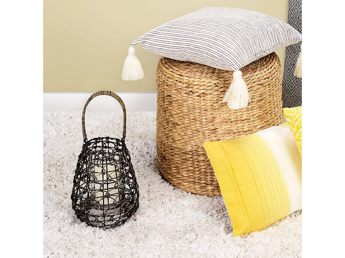 Lanterne photophore en métal et corde de papier marron d32x34,5h