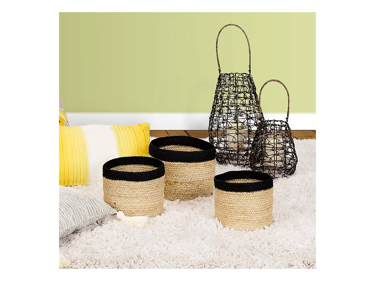 Lanterne en coton tressé et fibre naturelle marron 15x24x28h