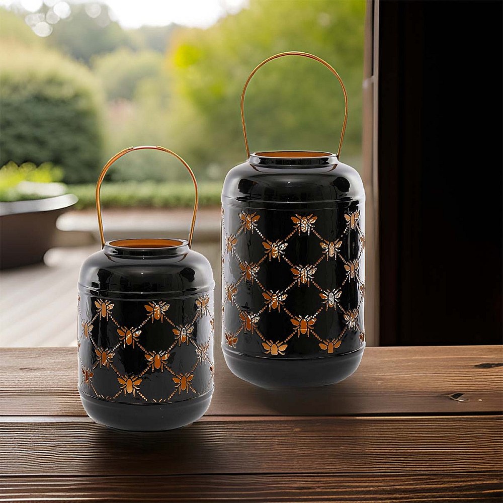 Lanterne ronde ajourée en métal Abeille 14 x 25 cm