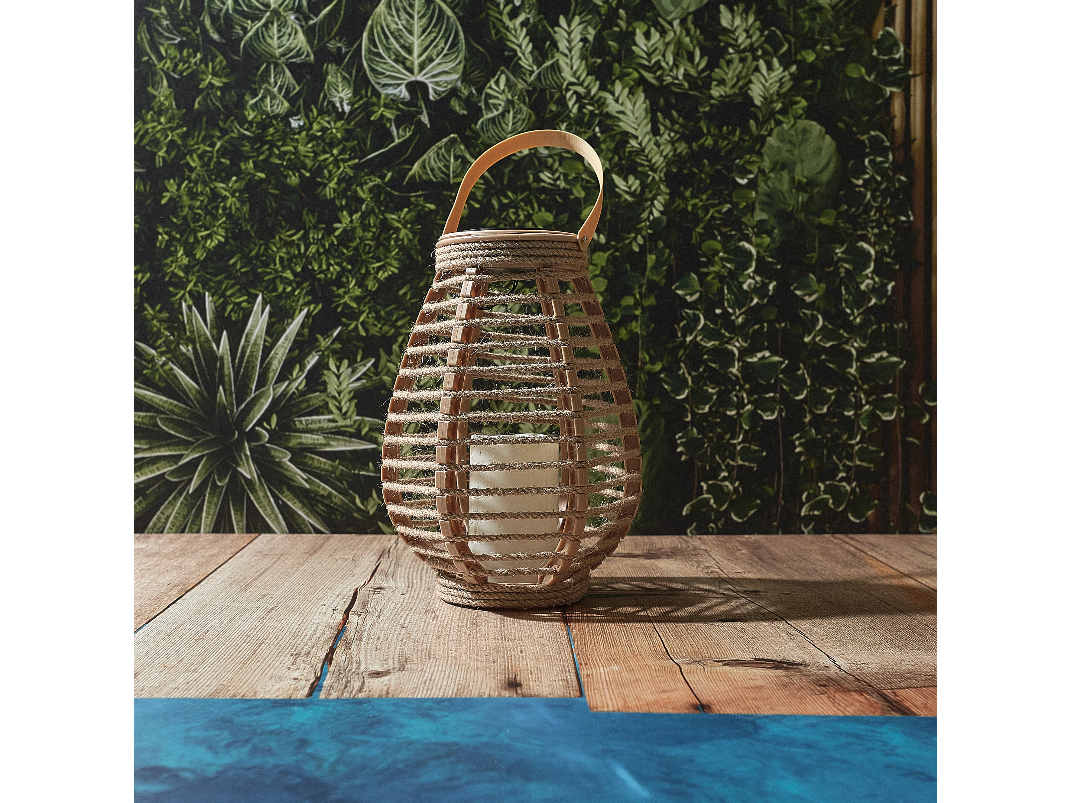 Lanterne Solaire Effet Bougie H26.5cm Beige