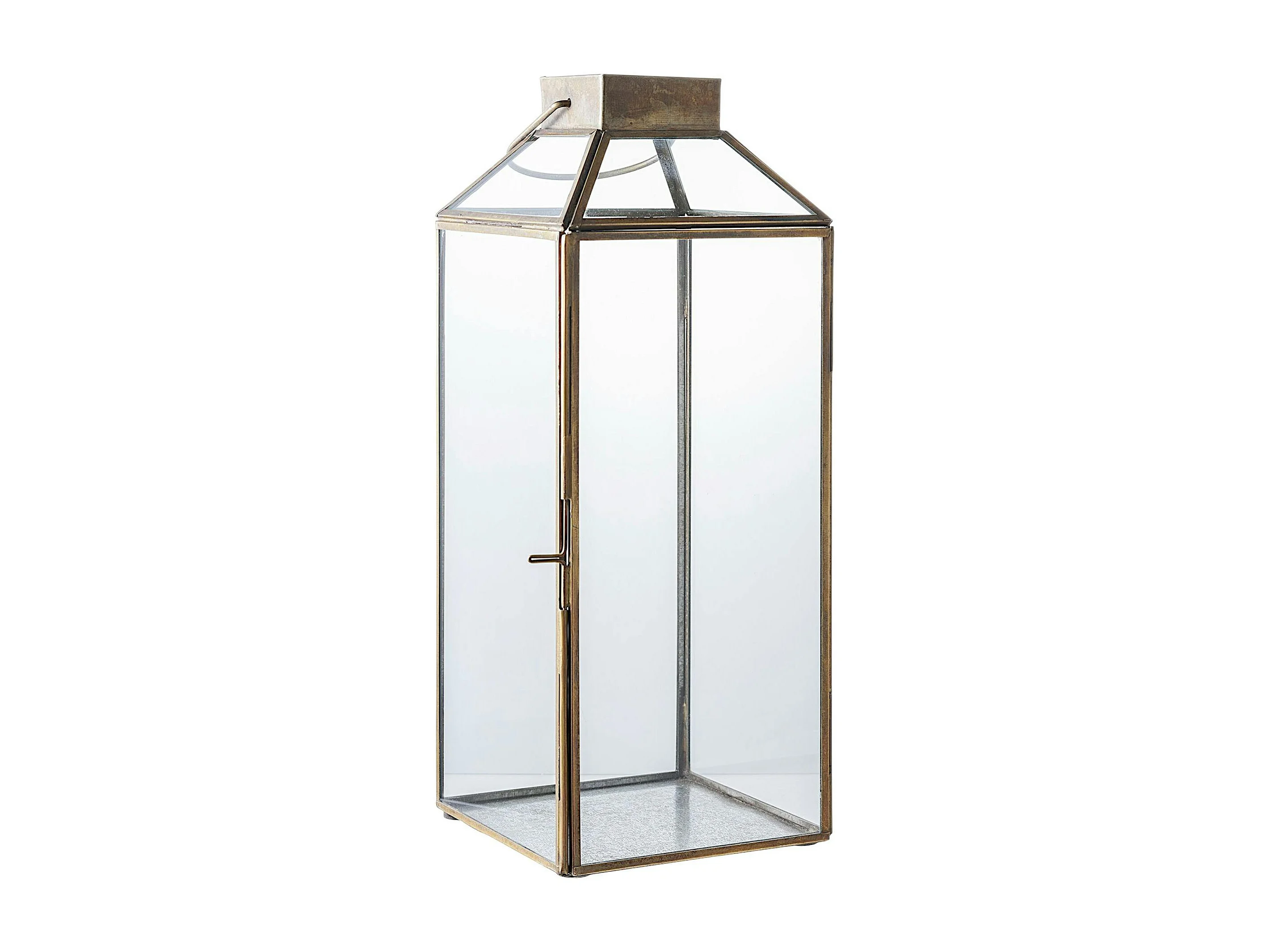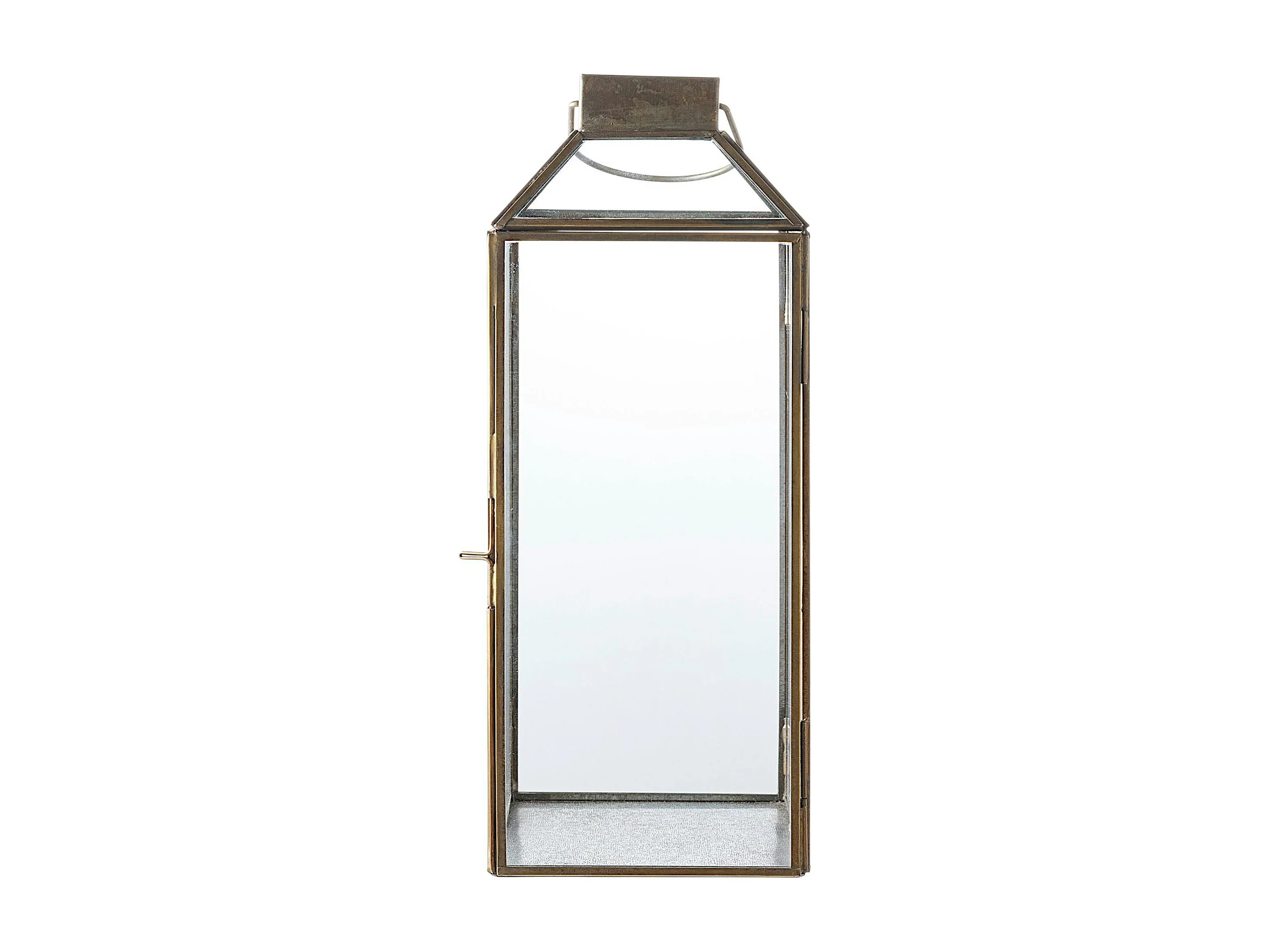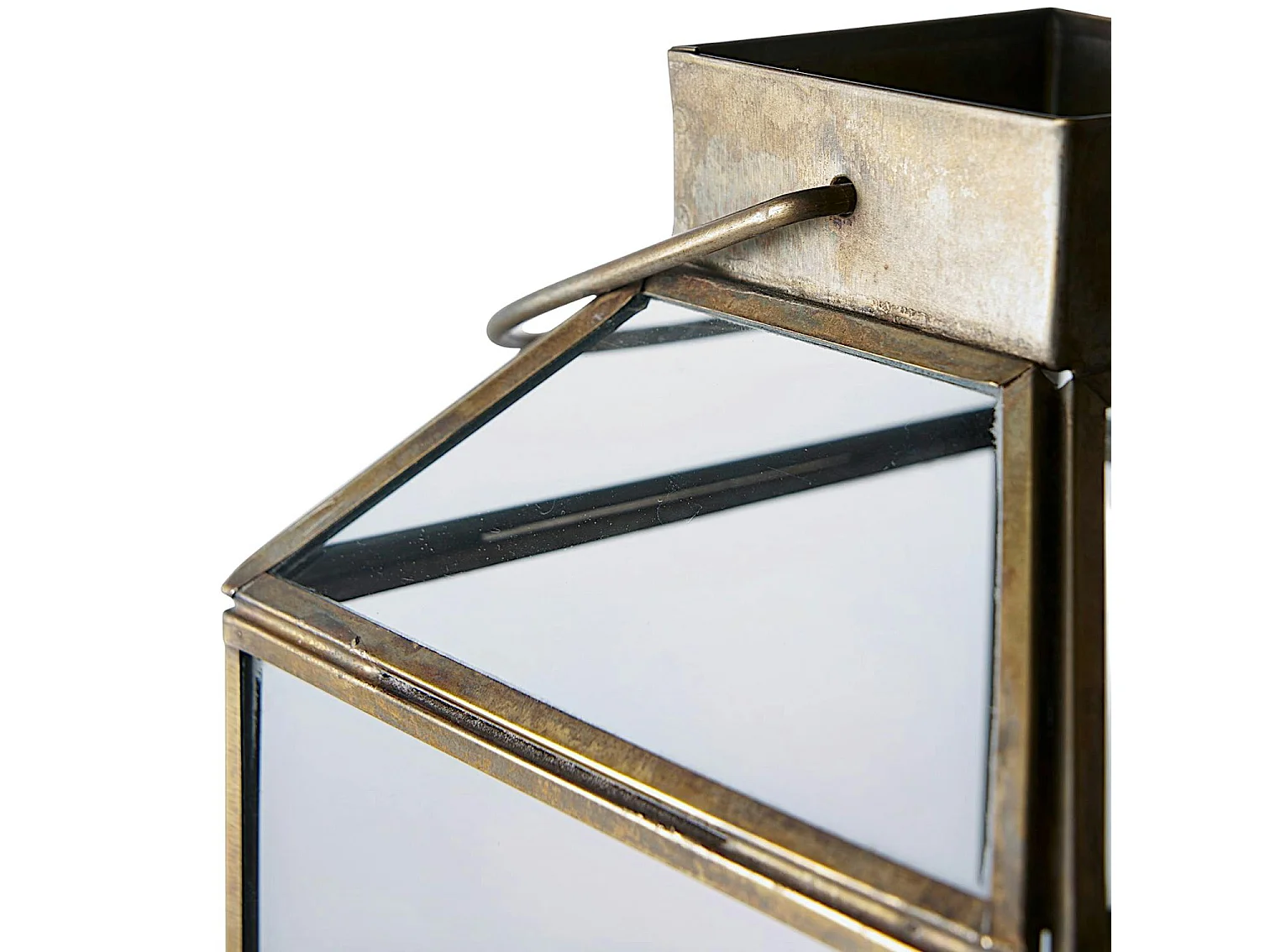 Lanterne vintage verre et métal effet usé à poignée