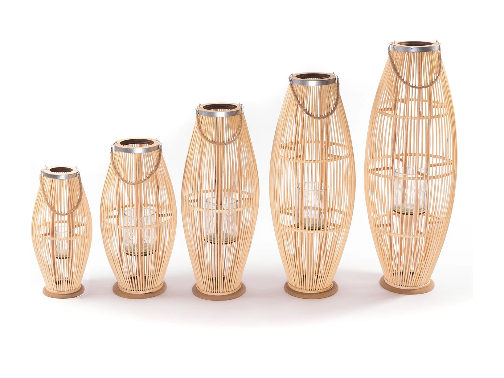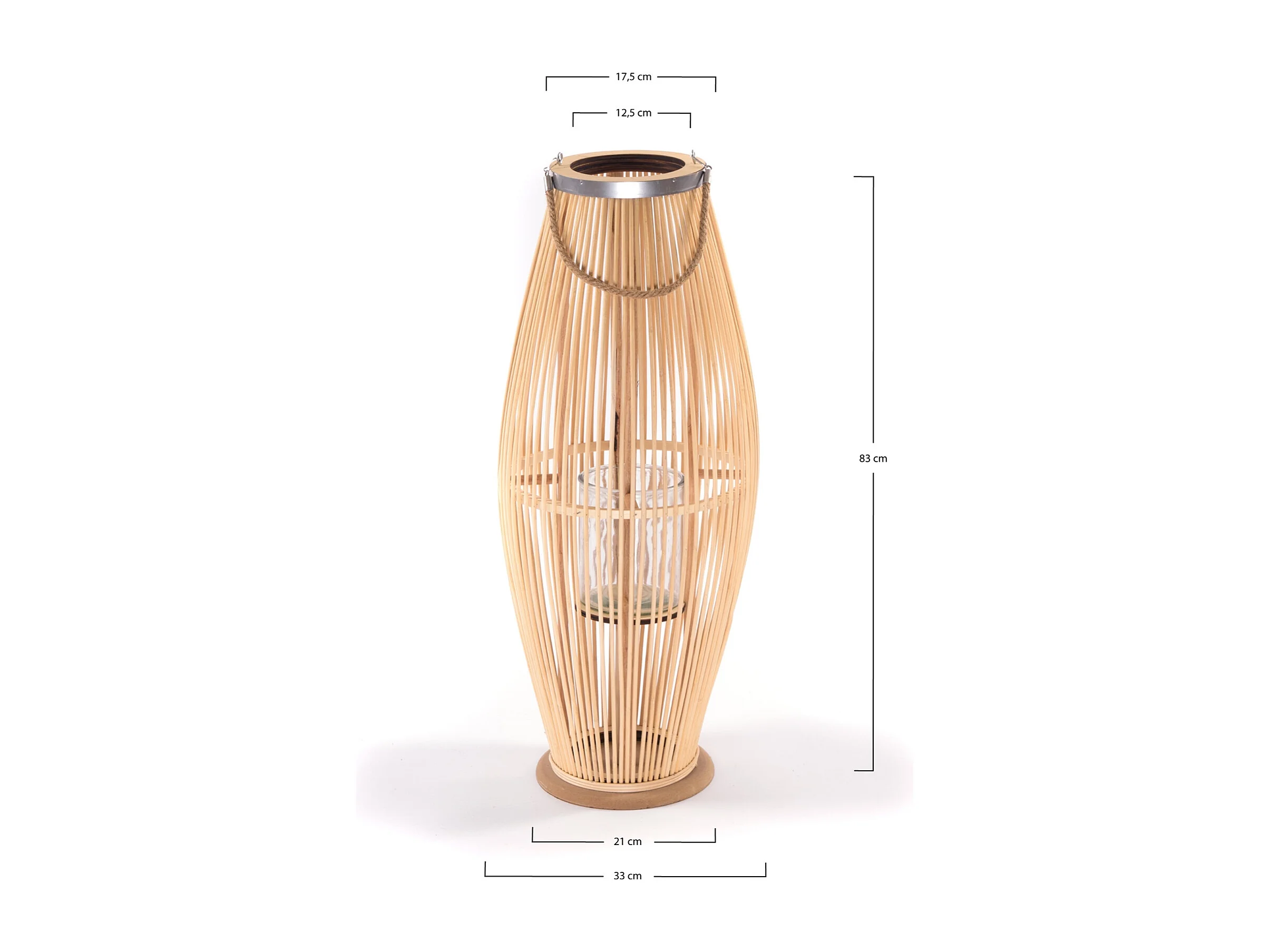 LANTERNE Iva | Couleurs naturelles | avec insert en verre | chandelier | lampadaire | lampe en bambou | lanterne | porte-bougie | luminaire