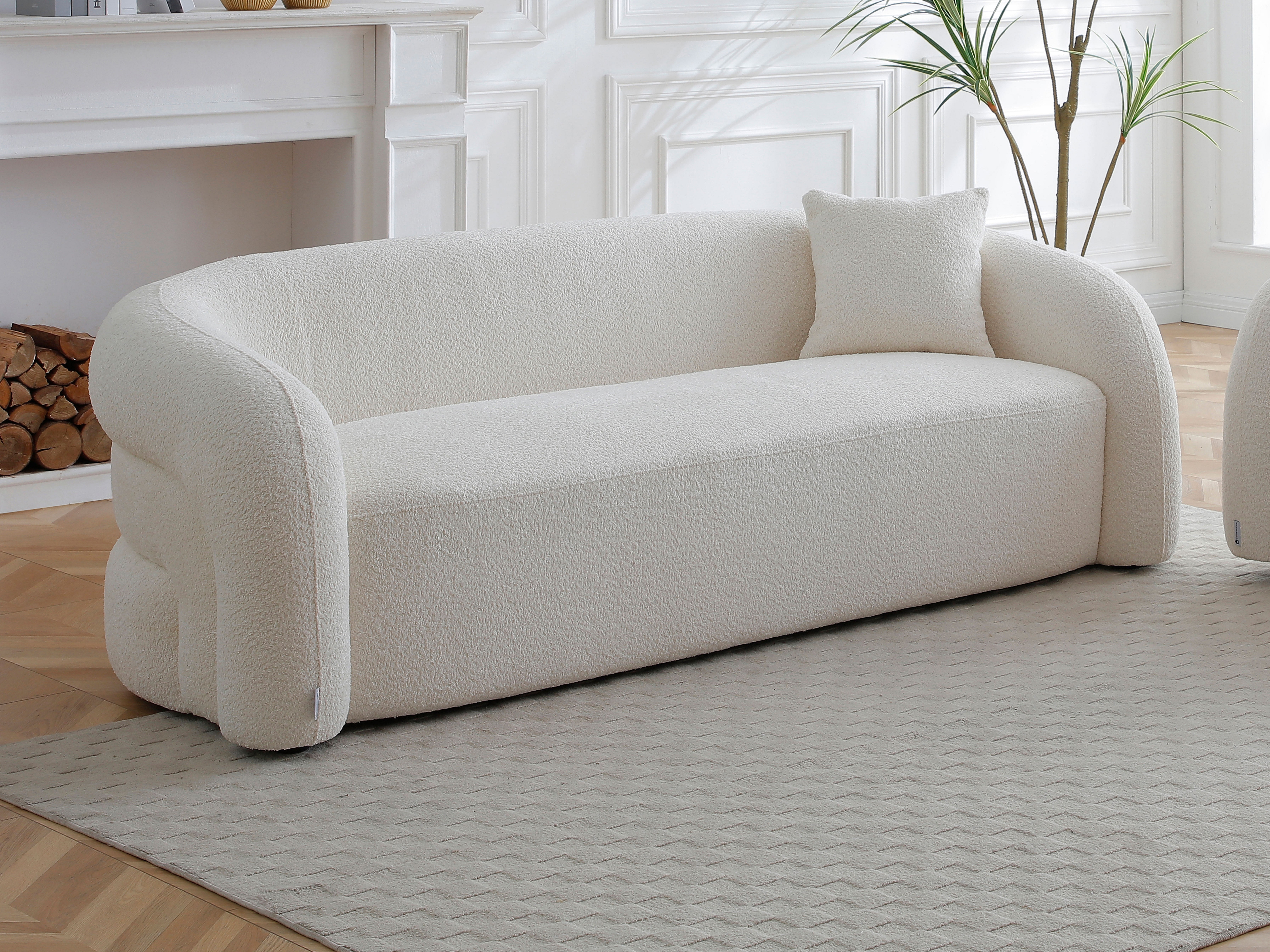 • Un toucher réconfortant : Le tissu bouclette évoque chaleur et cocooning dans un esprit contemporain.