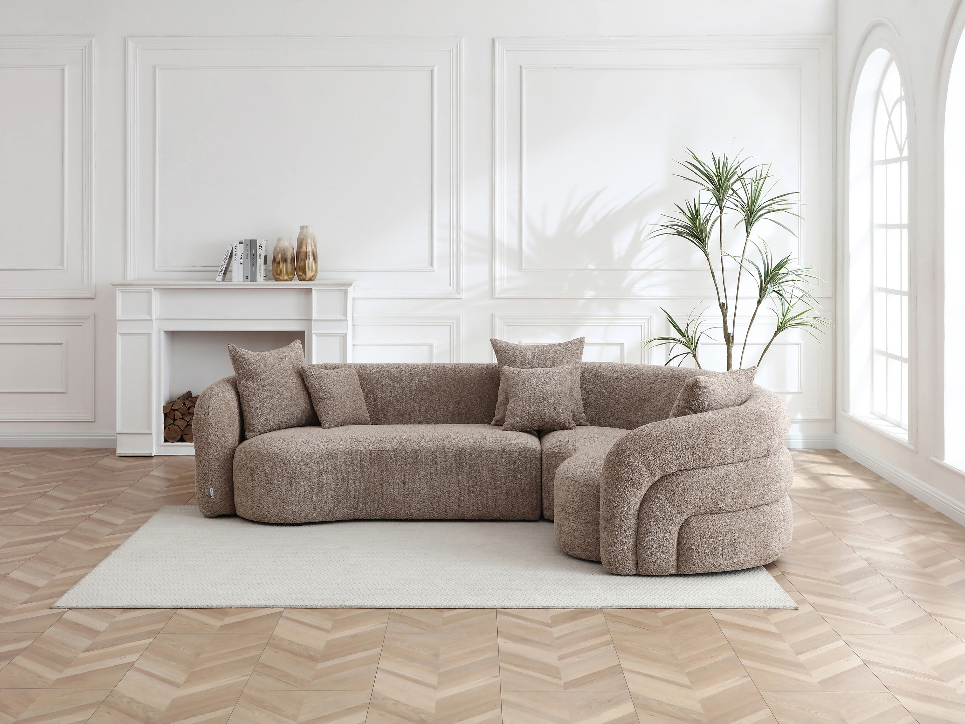 Canapé d'angle droit en tissu bouclette taupe LAPIOTA de Maison Céphy