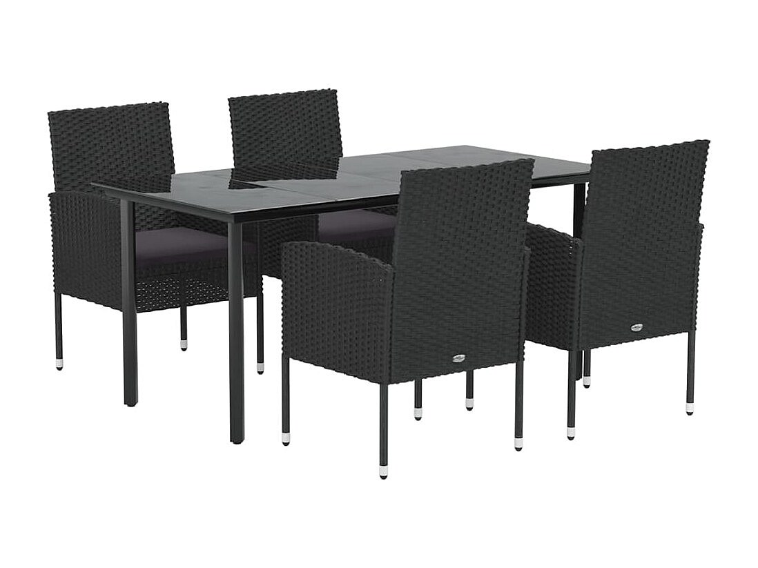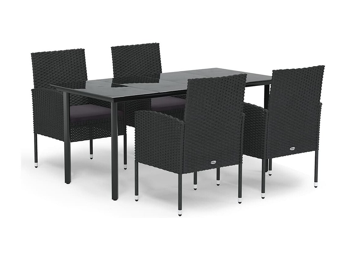 Lara Ensemble à manger de jardin coussins 5pcs Noir Résine tressée