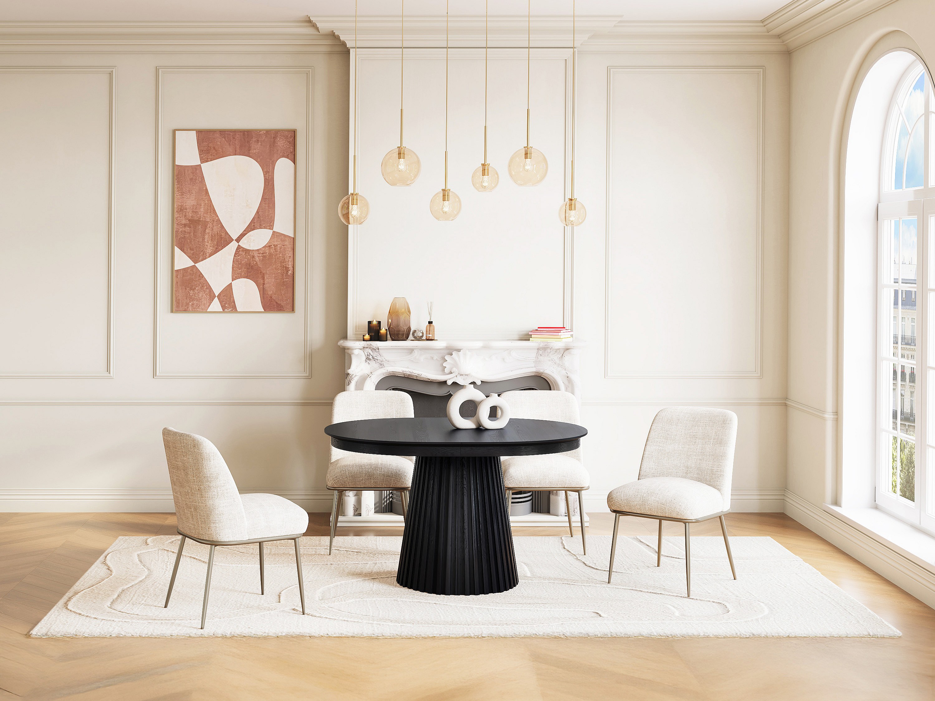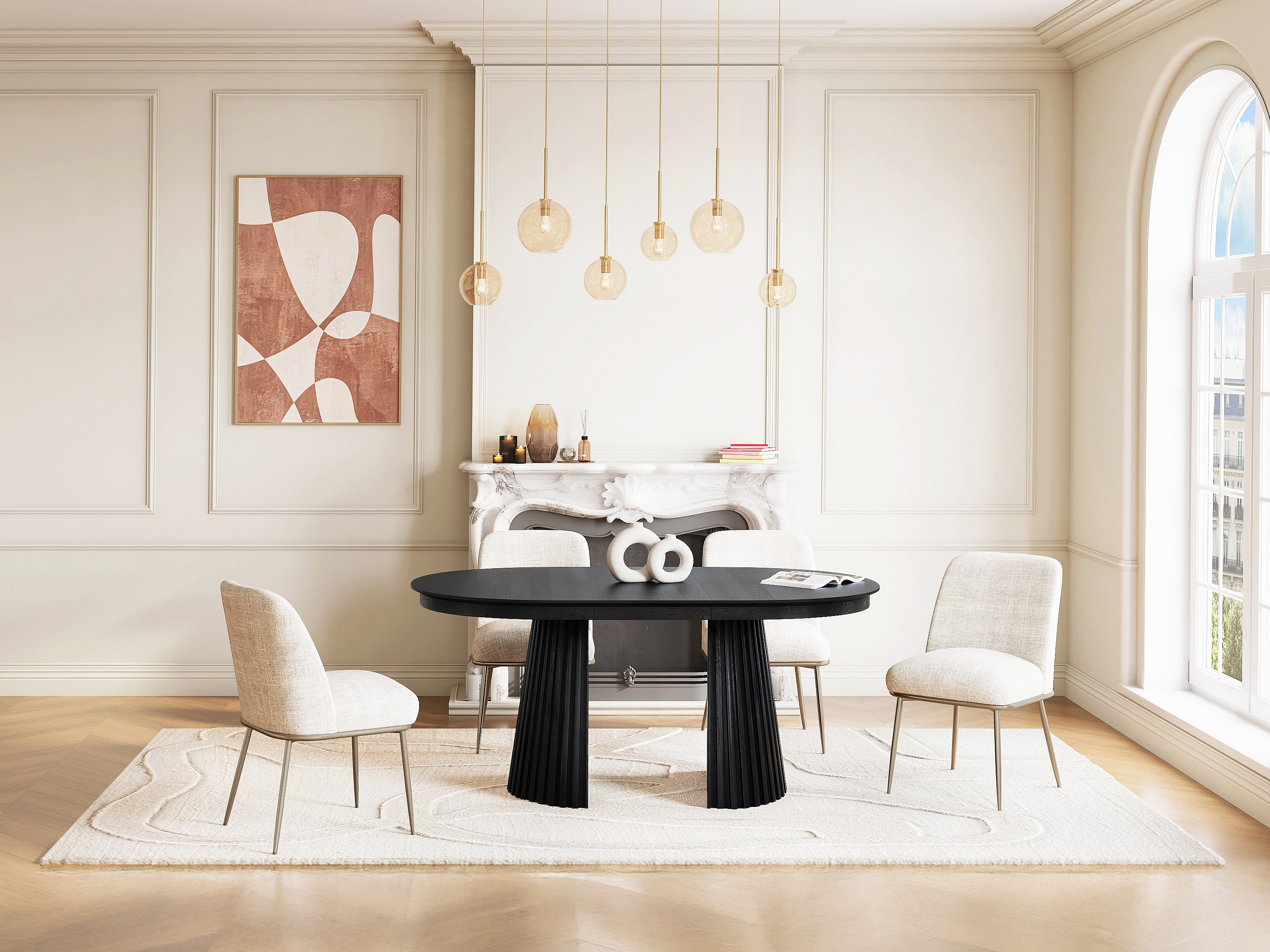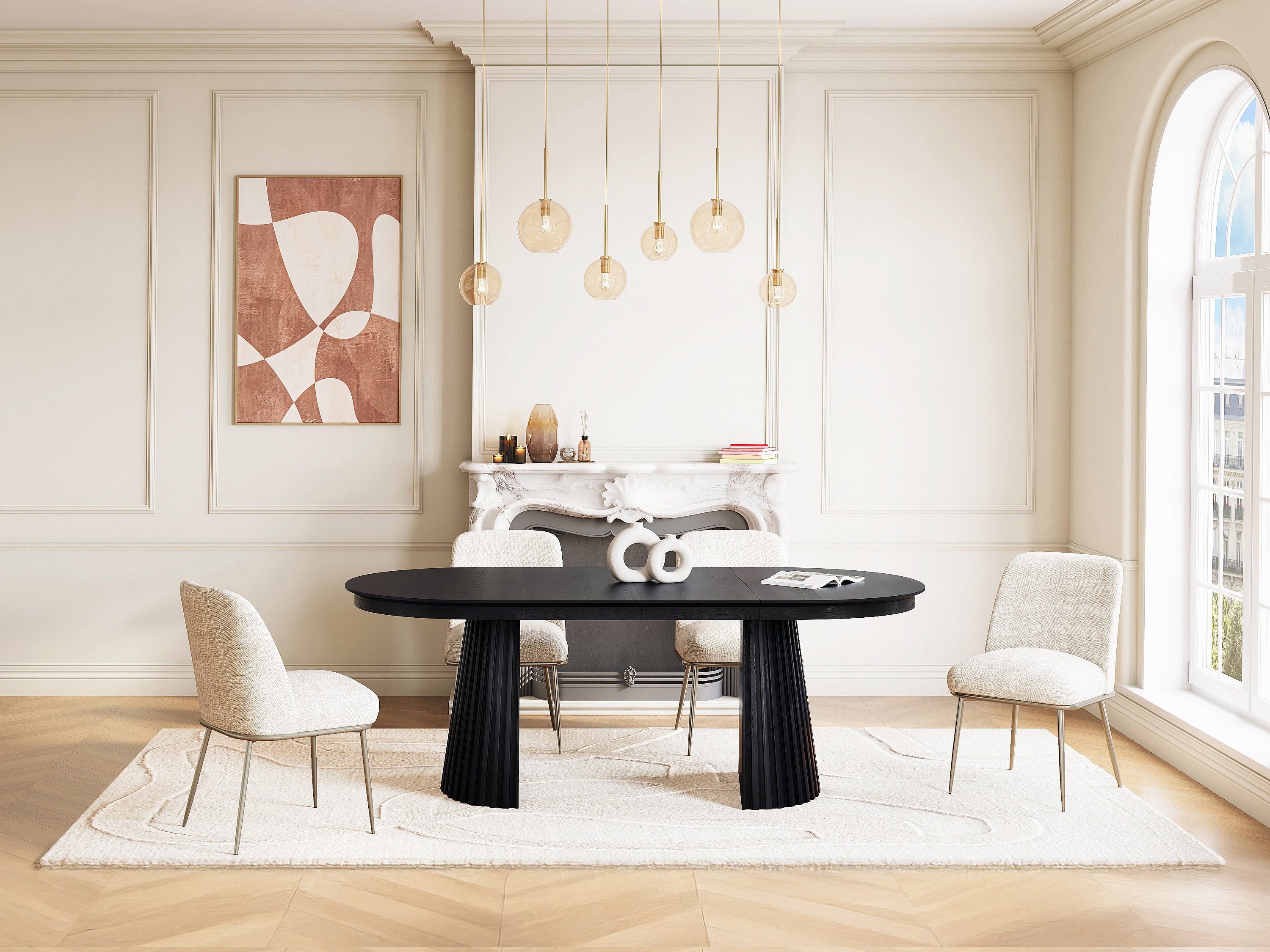 Table à manger extensible 4 à 10 personnes placage frêne - Noir - LATSURY