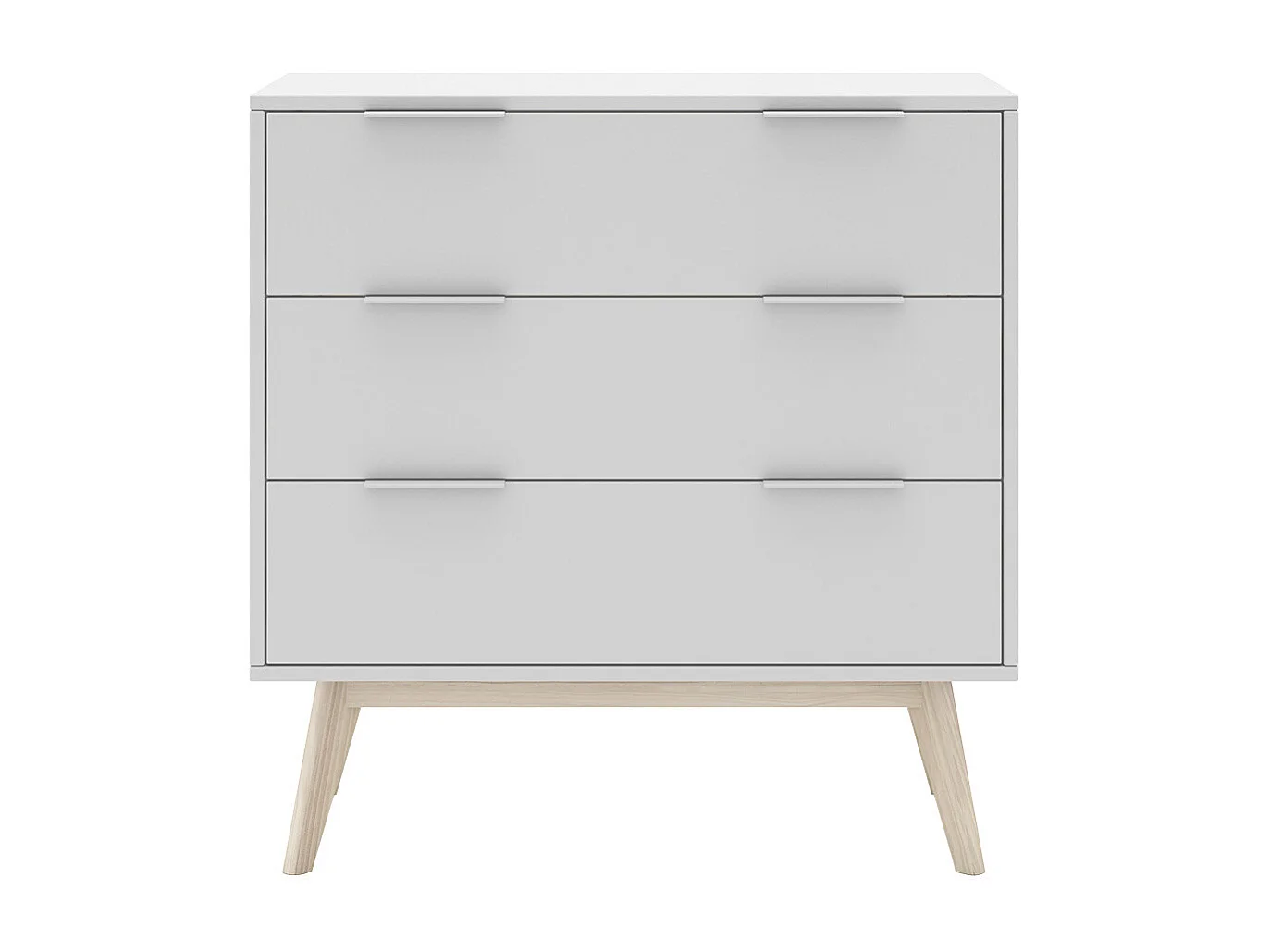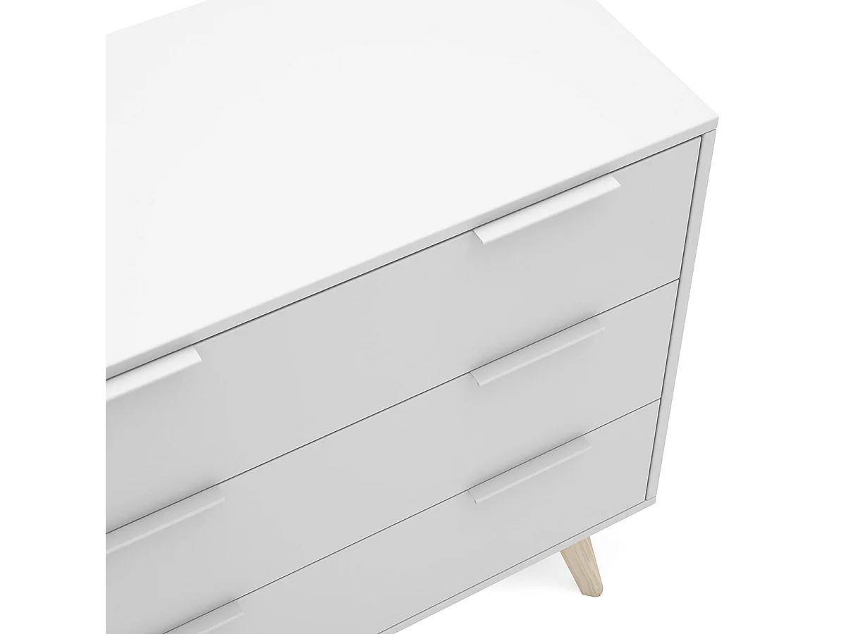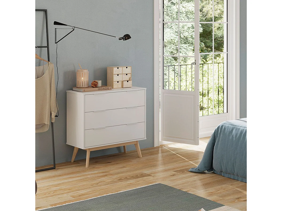 LAUPELL - Commode Scandinave 3 Tiroirs Pin Massif Naturel et Blanc