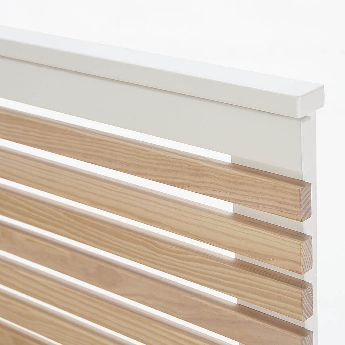 LAUPELL - Lit 140x190cm + Tête de Lit Blanc et Naturel