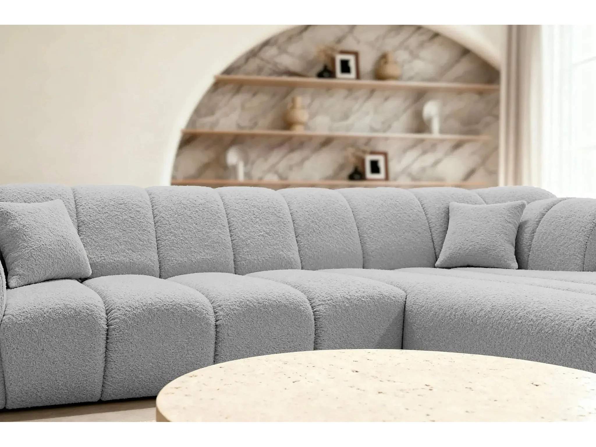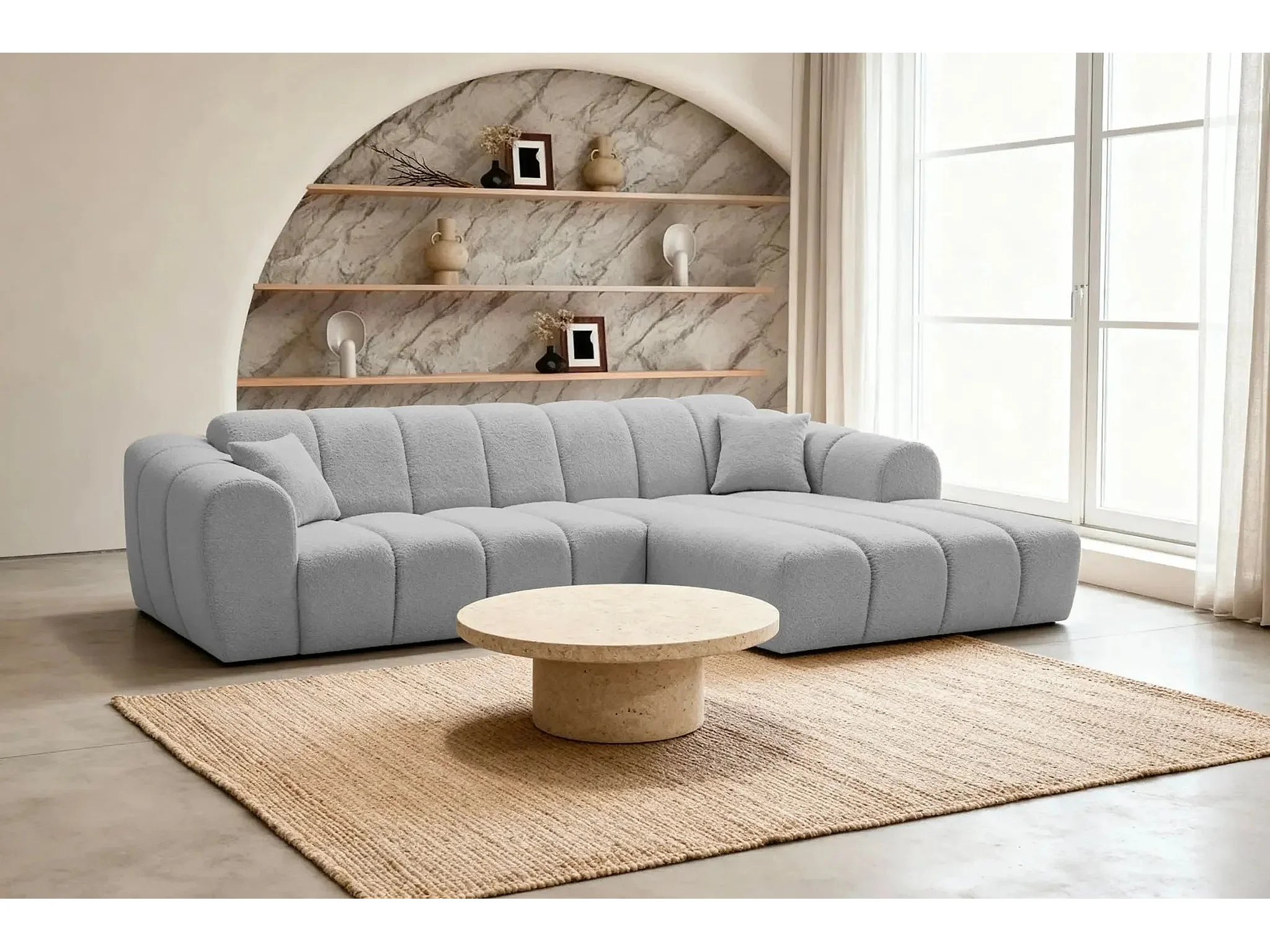 LAURA - Canapé d'angle tissu bouclette 4 places - Gris clair - Droit