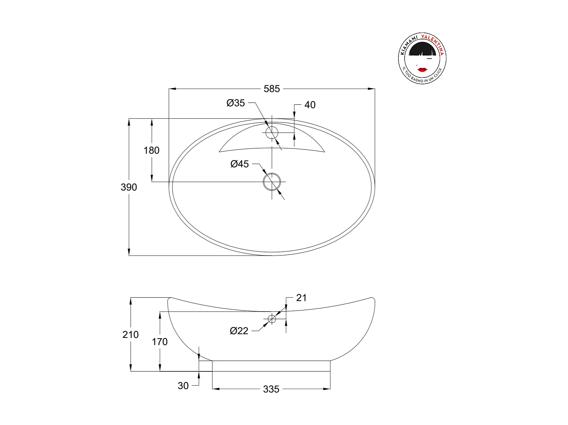 Lavabo-Vasque à poser-Bac à laver ovale en céramique avec trou de robinet