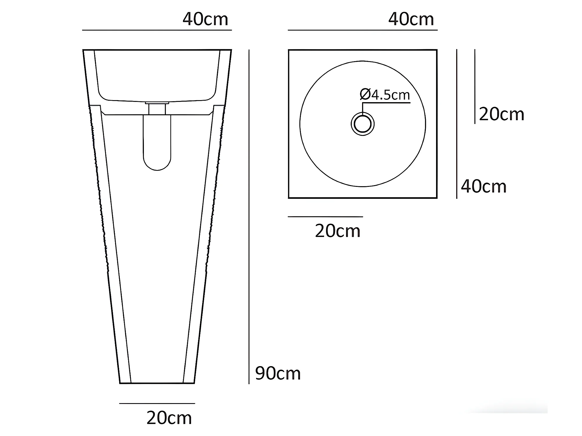 Lavabo colonne en marbre coloris beige - Longueur 40 x Hauteur 90 x Profondeur 40 cm