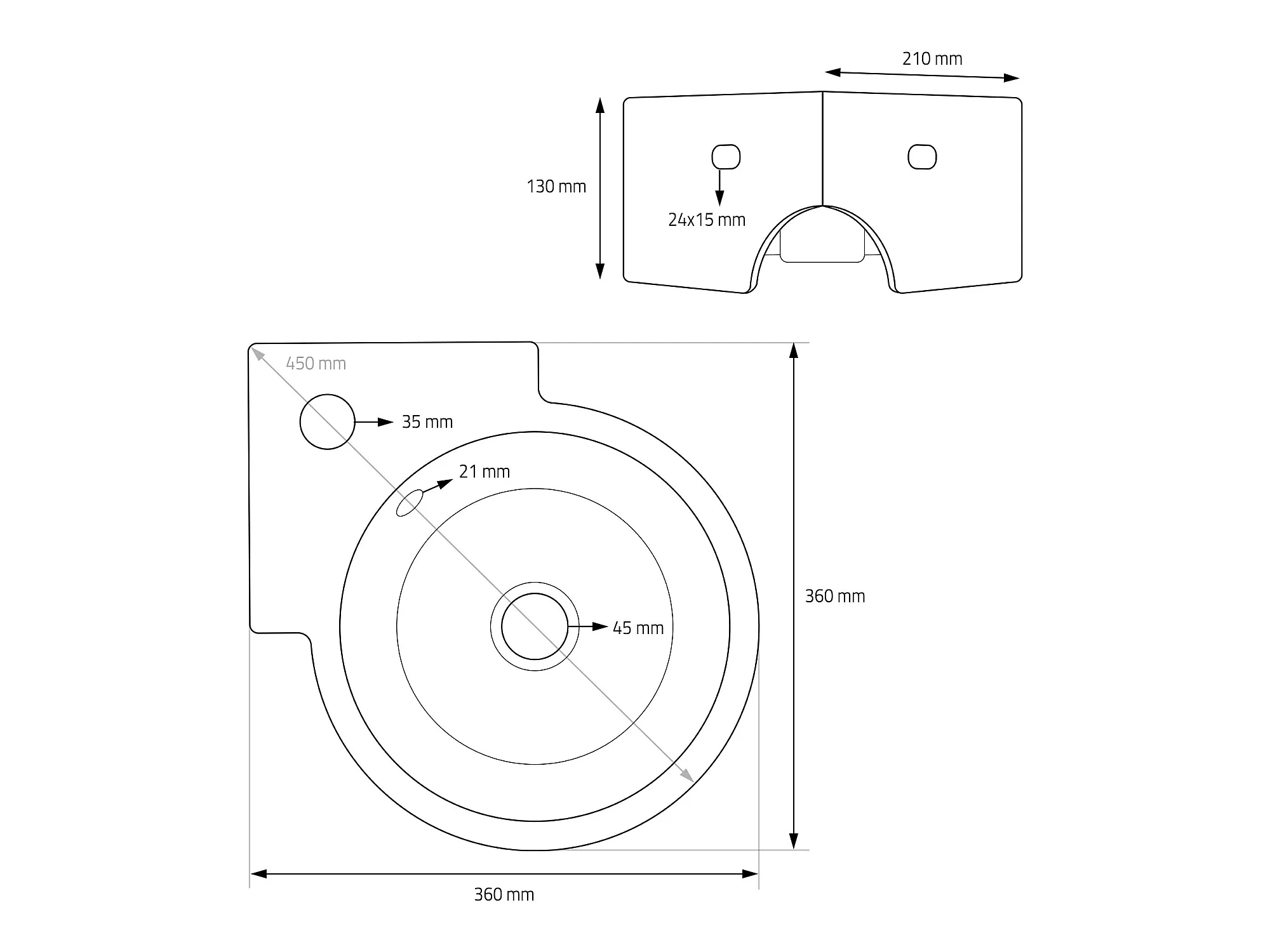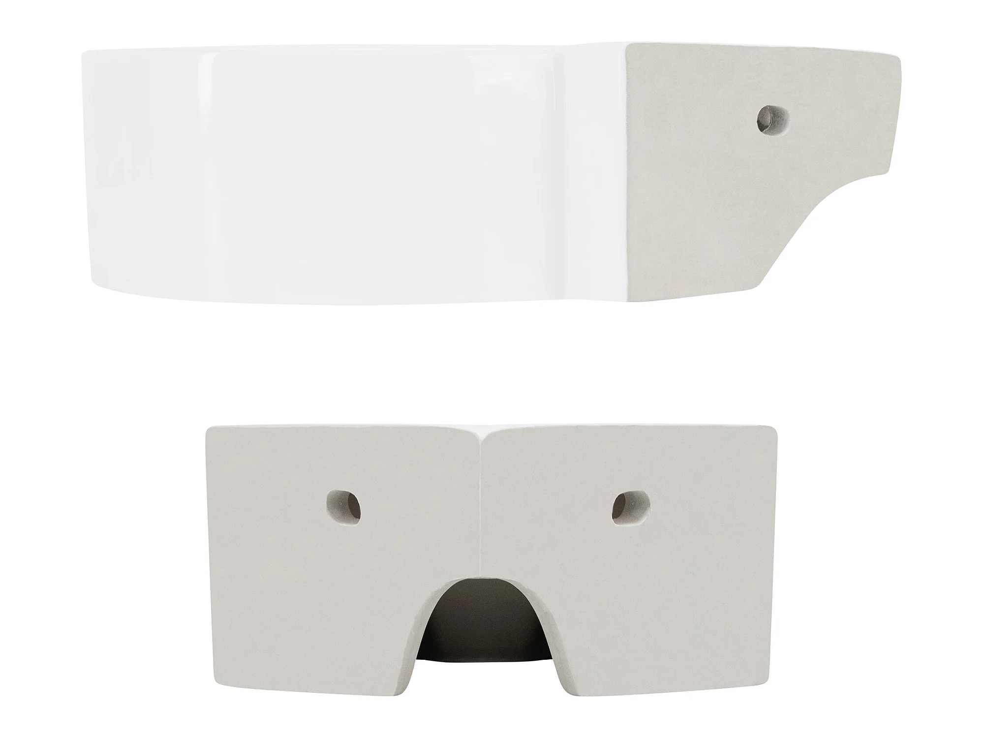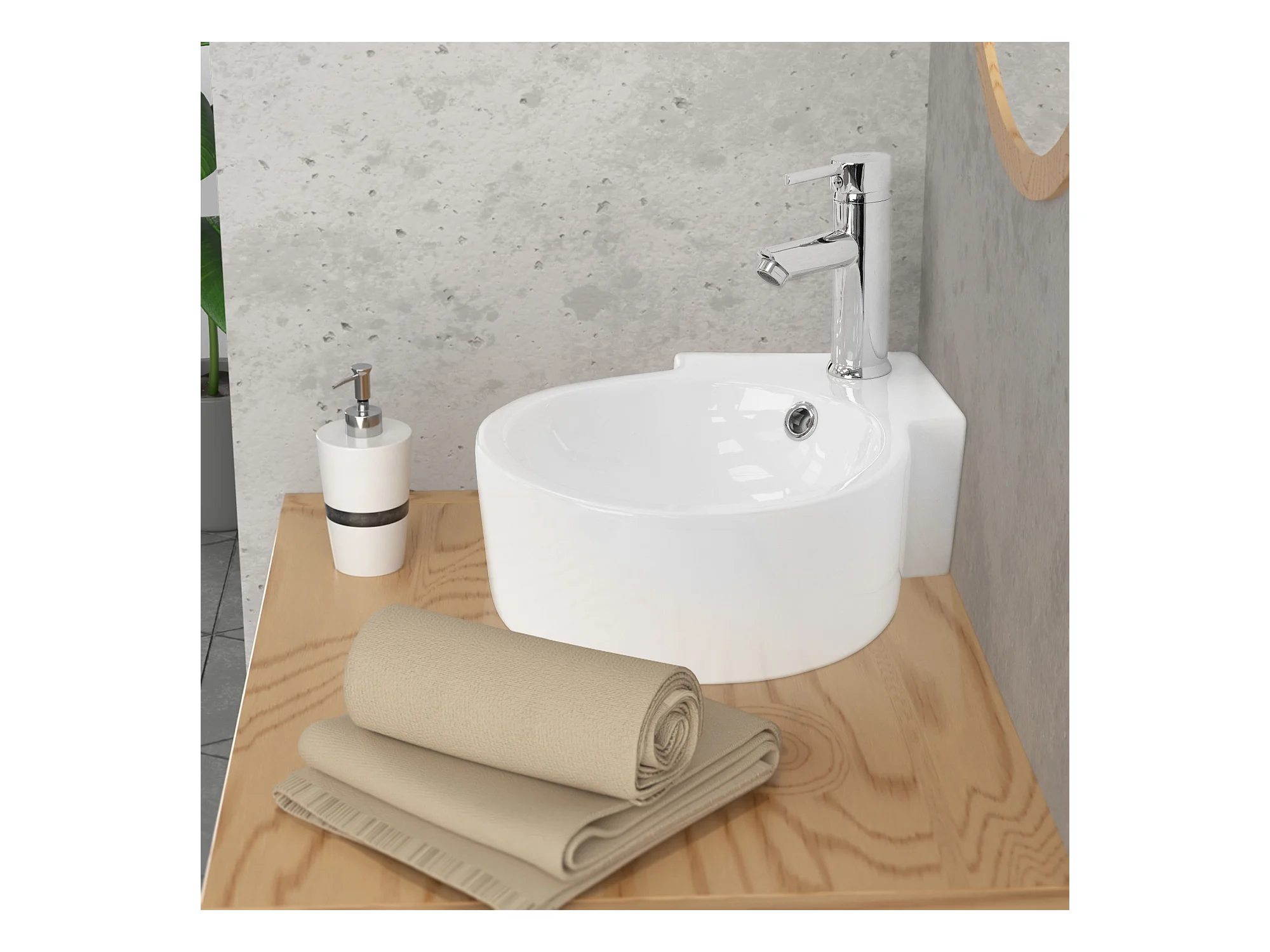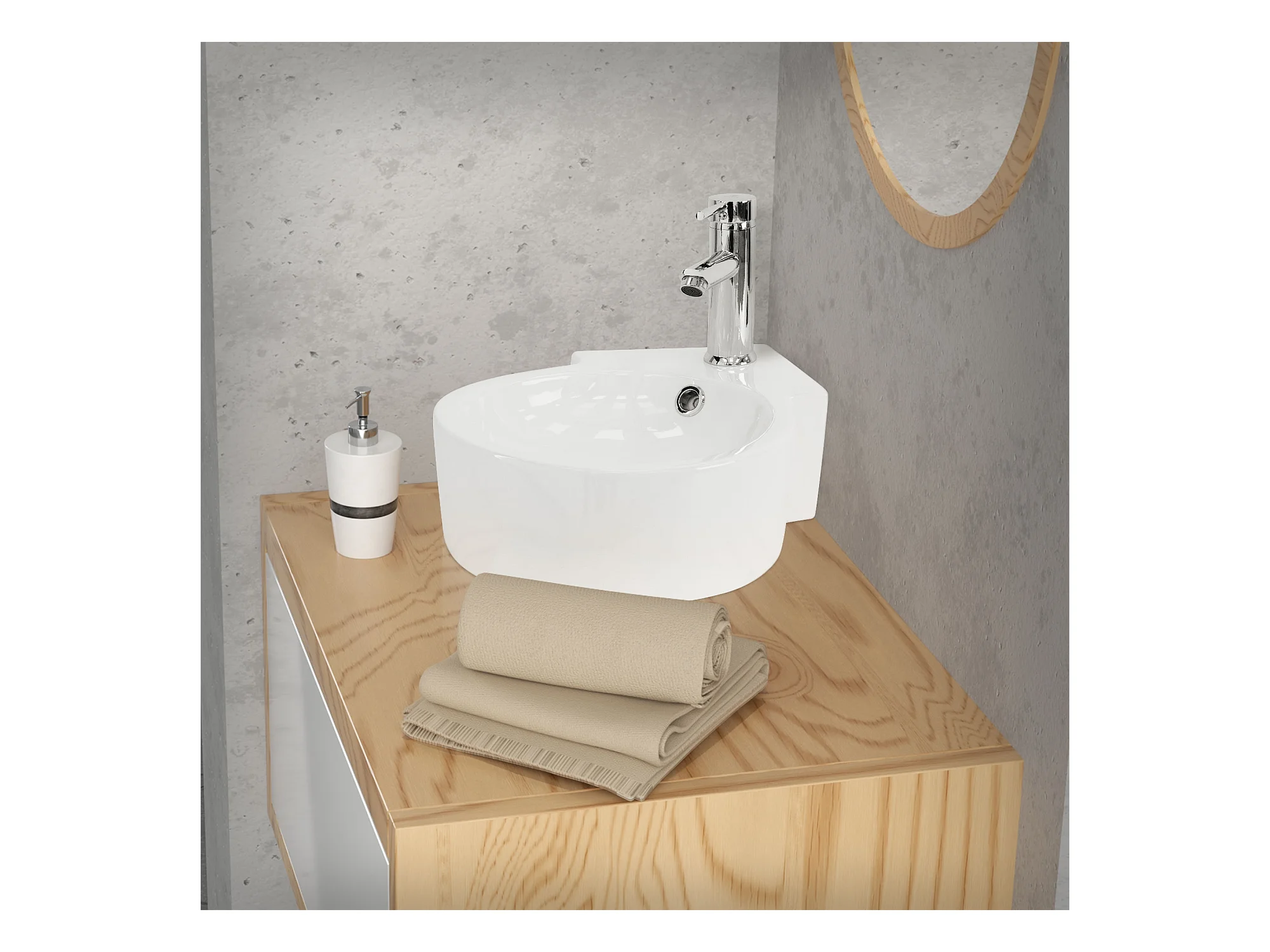 Lavabo d'angle ronde céramique blanc vasque à poser montage mural 450x360x130 mm