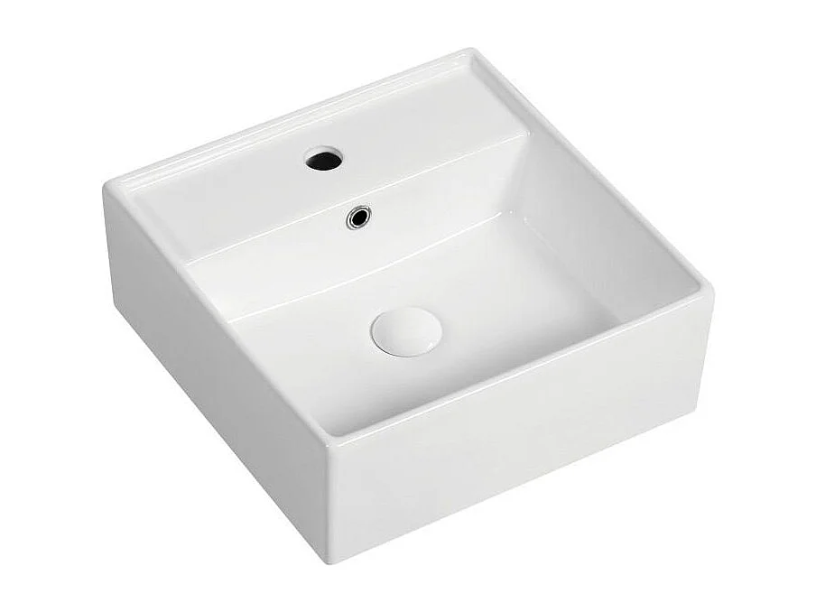 Lavabo Décoratif Carré 41X41cm En Céramique Blanche Avec Trou Pour Robinet