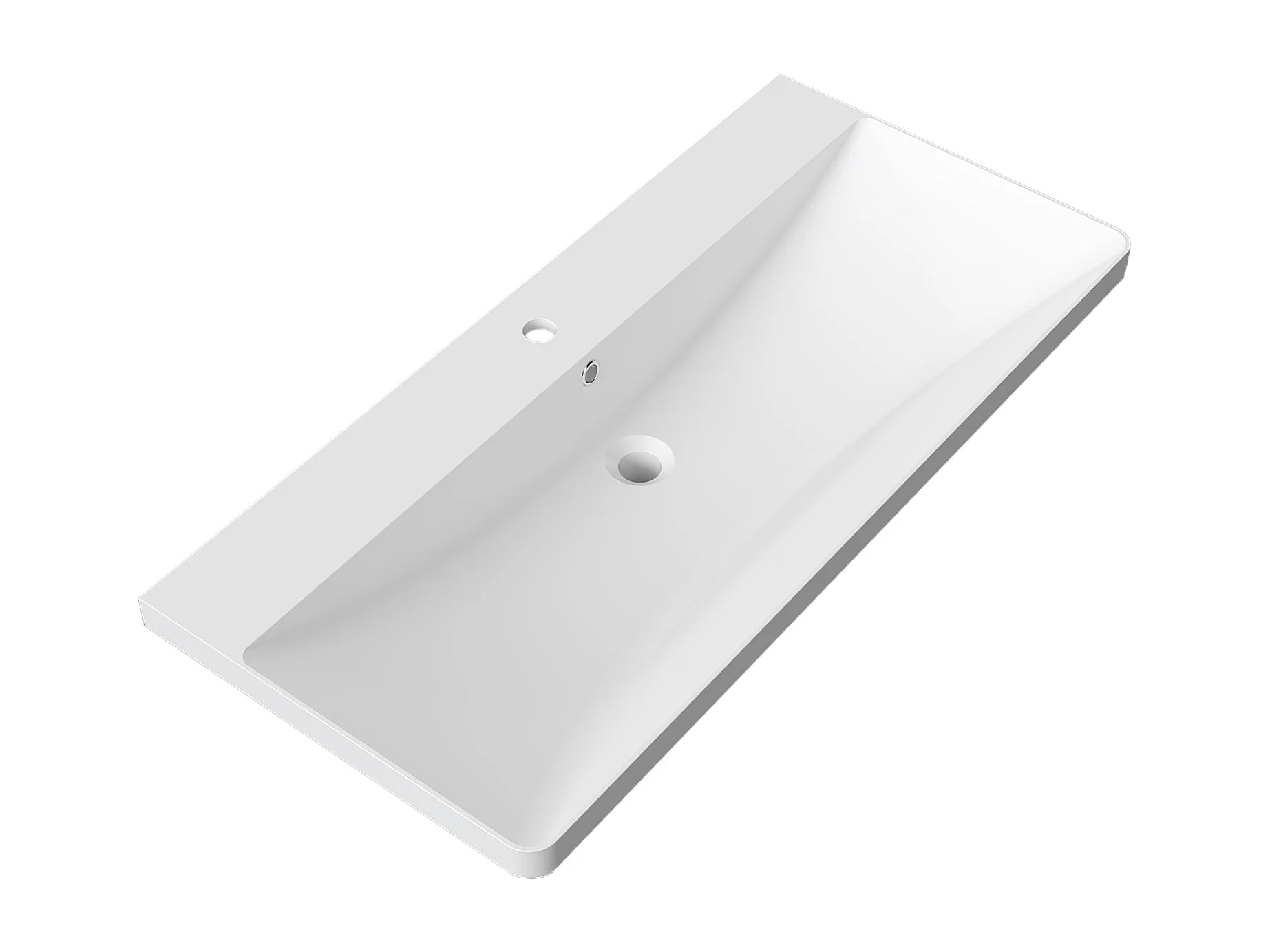 Lavabo encastré en résine effet pierre sans robinet, Dimensions : 101 cm (L) x 17 cm (H) x 47 cm (P), Blanc