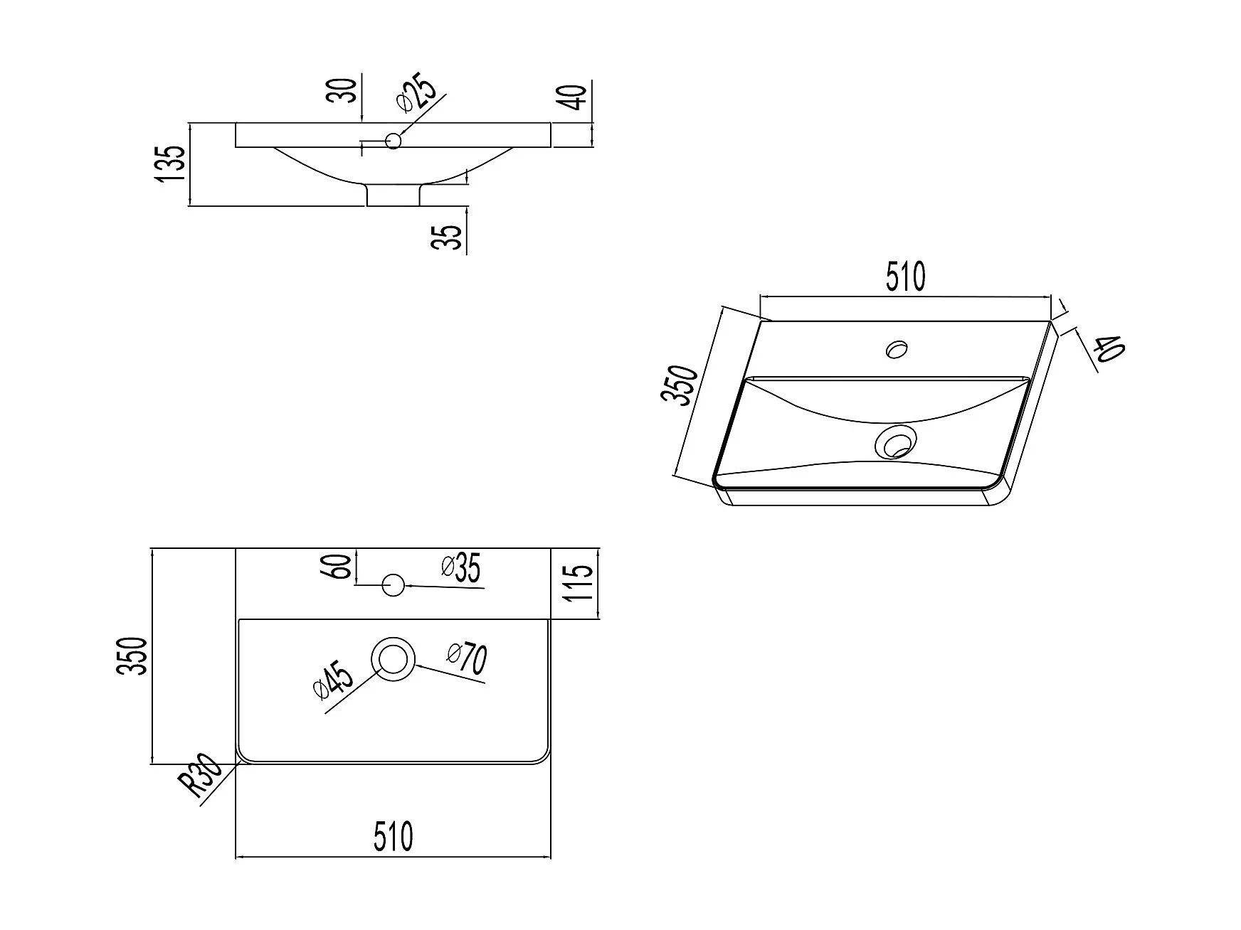 Lavabo encastré en résine effet pierre sans robinet, Dimensions : 51 cm (L) x 13.5 cm (H) x 35 cm (P), Blanc