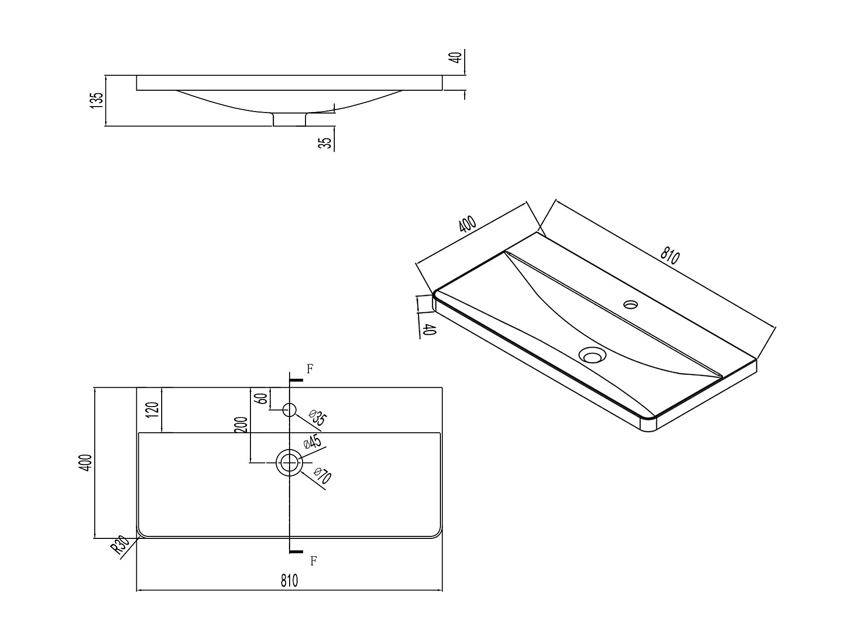Lavabo encastré en résine effet pierre sans robinet, Dimensions : 81 cm (L) x 13.5 cm (H) x 40 cm (P), Blanc