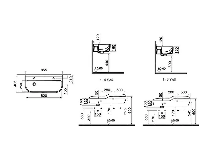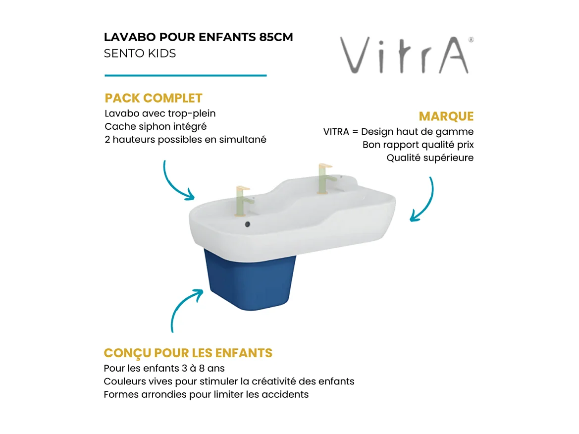 Lavabo pour enfant VITRA Sento Kids 85 cm 2 hauteurs avec trop-plein + cache-siphon Sento kids