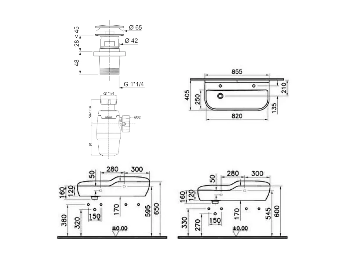 Lavabo pour enfant VITRA Sento Kids 85 cm + siphon et bonde Wirquin