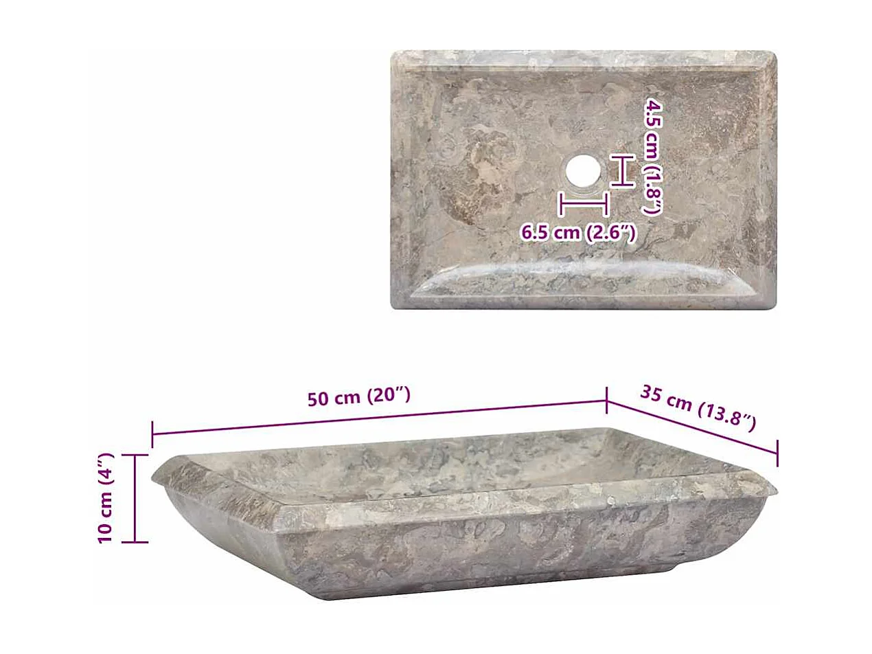 Lavabo salle de bain-Vasque à poser Gris 50x35x10 cm Marbre