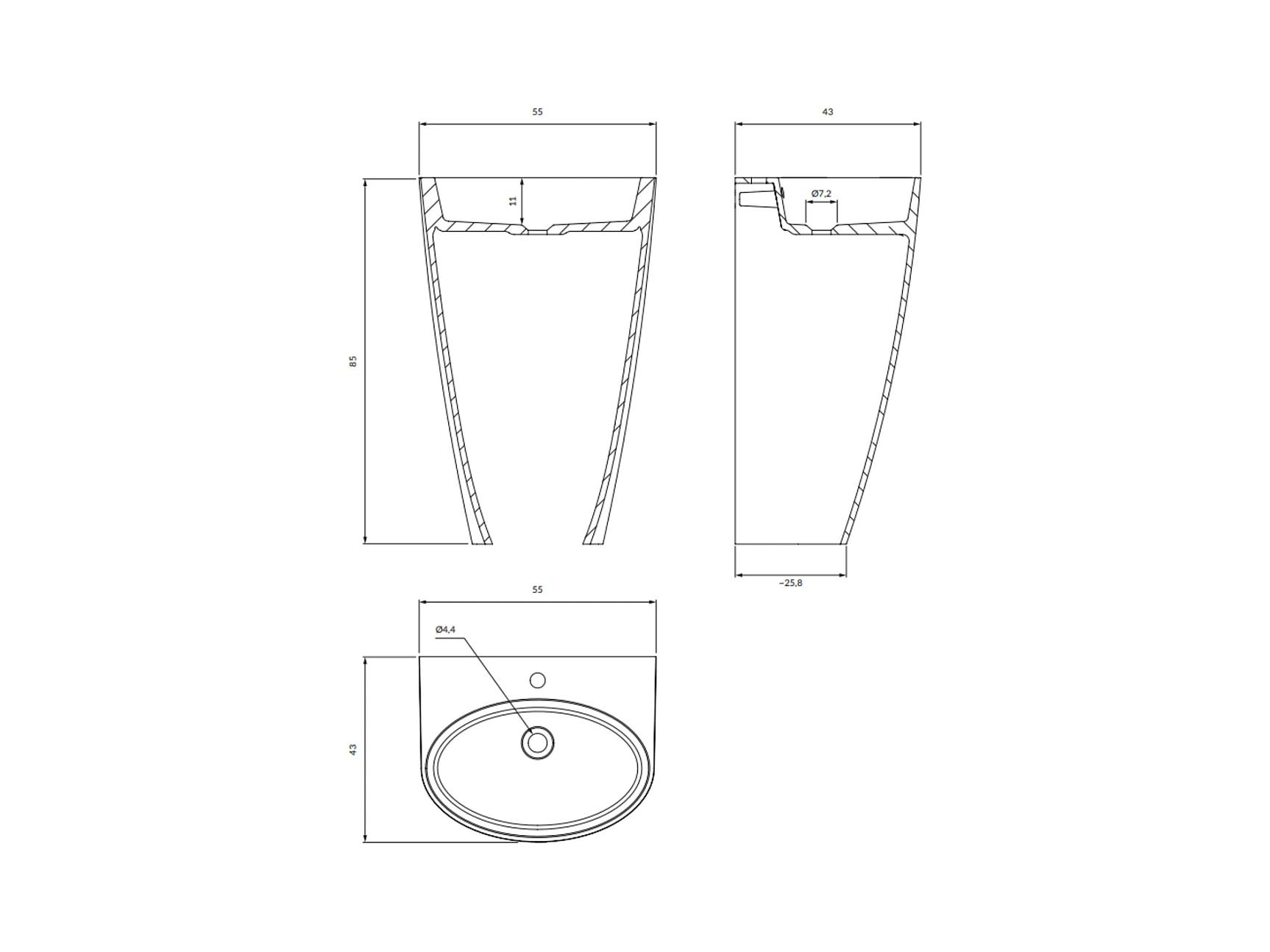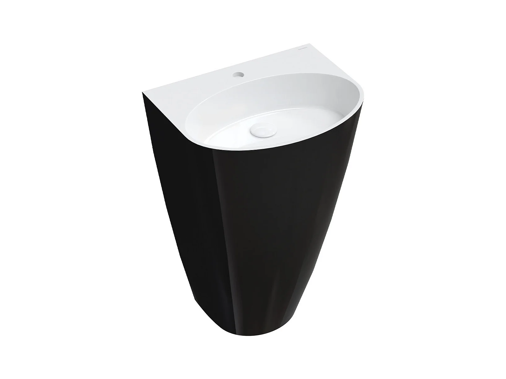 Lavabo sur pied 55 x 43 cm blanc noir brillant bonde de vidage incluse